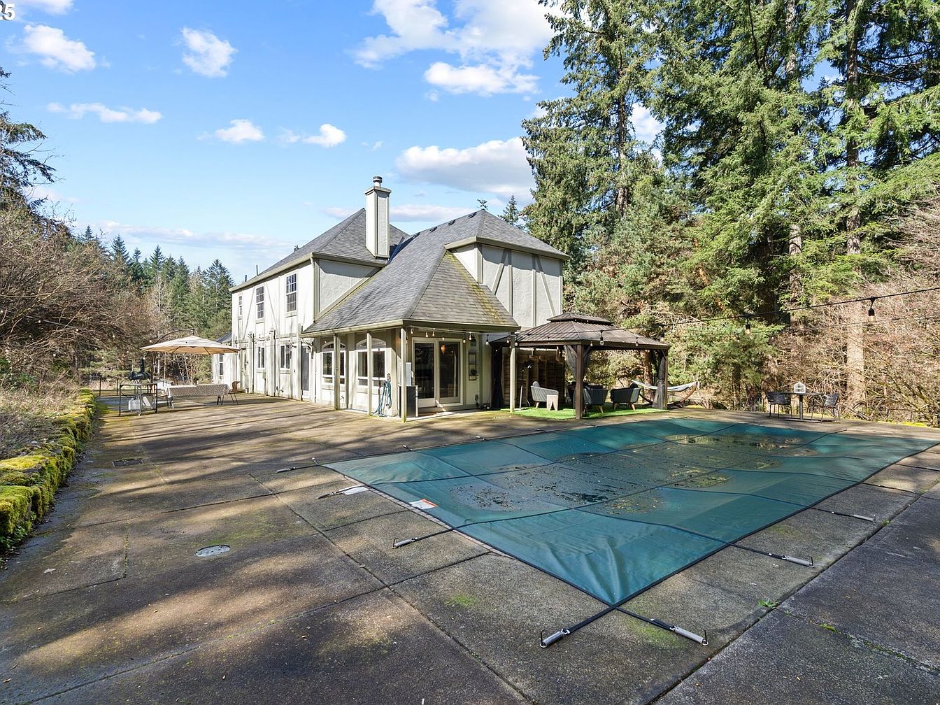 This beautiful Tudor-style estate, located in Vancouver, Washington, is a perfect blend of classic architectural charm and modern amenities. Nestled on a spacious 2.6-acre plot, the home is ideal for those seeking privacy and ample outdoor space. The property offers 6 generously sized bedrooms, including two primary suites each with en-suite bathrooms and walk-in closets, providing luxurious comfort for residents. The home features 5 bathrooms, with two fully remodeled on the main level, enhancing both functionality and style. The gourmet kitchen is fully equipped with newer stainless steel appliances, granite countertops, an island, and custom cabinetry, making it a chef’s delight. One of the standout features is the sparkling in-ground saltwater heated pool, perfect for entertaining, outdoor activities, and relaxation. The estate also includes a cozy entertainment lounge, ideal for social gatherings or quiet downtime. Recent renovations boost the home’s appeal and functionality, including a 3-year-old roof, new main water line, a newly plumbed well for irrigation, new geothermal furnace, updated plumbing, new insulation in the crawl space, new laminate flooring, and high-end light fixtures. Additional amenities include a large shed with a newer roof and flooring, a Tesla charger, and RV parking with water and electric hookups. Notably, the property has no HOA, adding to its attractiveness. With a listing price of $1,249,000, this impeccably decorated, fully furnished, and move-in-ready estate represents an exceptional opportunity to own a stunning home in a tranquil setting.