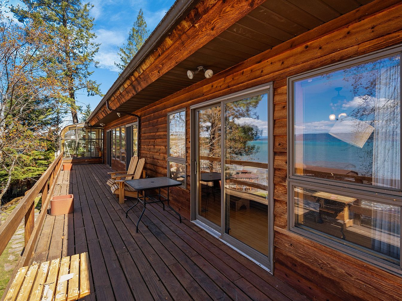 This charming lakeside property located in Polson, Montana offers a rare opportunity to enjoy 216 feet of Flathead Lake frontage with a level lawn extending right to the water’s edge. The home displays a rustic architectural style with wooden exterior siding and a tiled roof that complements the natural forest surroundings. The main house features 2 bedrooms and 2 bathrooms, with an additional office space that could easily serve as a third bedroom. Situated just minutes from Polson, this residence combines tranquility with convenience. A fully functional guest house on the property includes 1 bedroom, 1 bathroom, and a huge deck, perfect for visitors or extra living space. There are multiple decks including one large deck on the main house and another right at the water’s edge, ideal for outdoor living and lakefront enjoyment. Additional amenities include a boat with a cover and several storage sheds on the property. Although the year built and recent renovations are not specified, the well-maintained appearance suggests careful upkeep. The listing price for this exceptional lakeside retreat is $1,950,000.