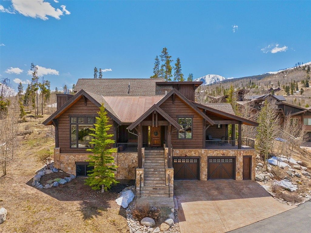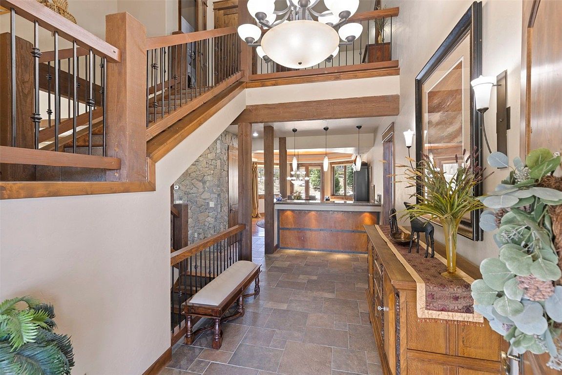 This residence exemplifies a classic mountain architectural style, characterized by its use of rich natural stone and warm wooden exteriors with exposed beams, blending seamlessly into the alpine landscape. Nestled in Silverthorne, Colorado, the home offers elevated mountain living with breathtaking views of the Gore Range. Built originally as an Eagle’s Nest residence, the home features meticulous craftsmanship and refined finishes that highlight both comfort and elegance. The interior is designed for versatile living and entertaining, boasting an open layout that includes a chef’s kitchen, dining room, and living area with an adjacent wet bar. A hidden elevator shaft is cleverly integrated between the kitchen and dining room, allowing for future accessibility upgrades. The main level hosts a luxurious primary suite with a spacious walk-in closet, a high-end 5-piece bath complete with a steam shower, and a private balcony overlooking stunning mountain vistas. Upstairs, the flexible bunk/bonus room can serve as an office or guest area, alongside a second suite equipped with its own washer and dryer for guest convenience. The lower level expands the living space further with a second living room, custom wine nook, theater room with surround sound, an additional guest suite, and ample storage. It also provides easy access to both the garage and main laundry area. Outdoor living is equally impressive with a flagstone patio, fire pit, and terraced alpine landscaping accessible directly from the kitchen and dining rooms. Priced at $3,900,000, the home is ideally situated on a spacious plot in the Summit County region, providing ample space, style, and versatility just minutes from world-class trails and golf courses.