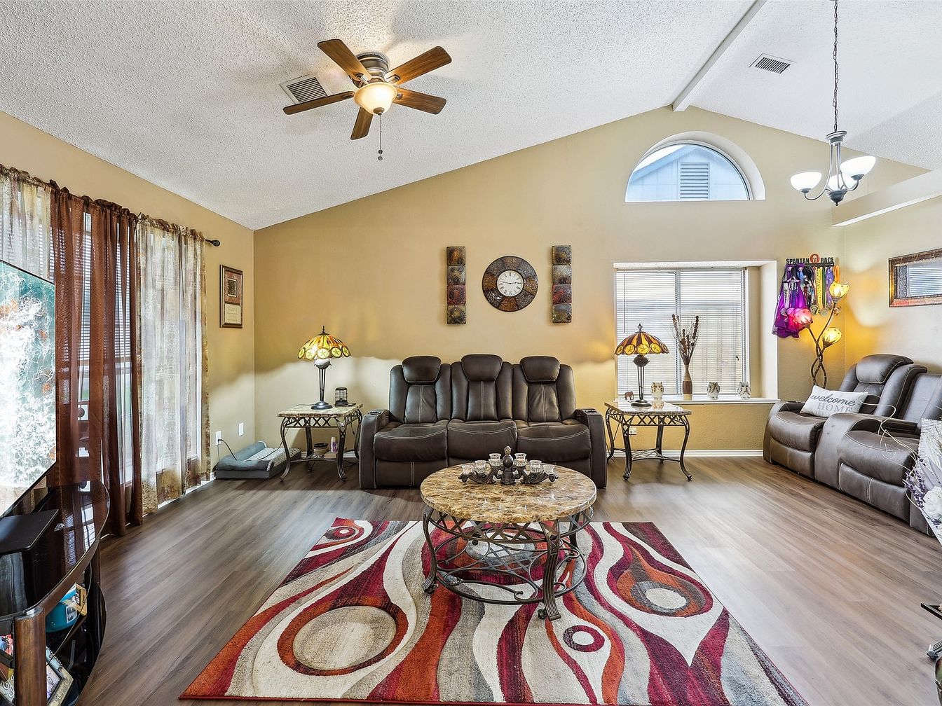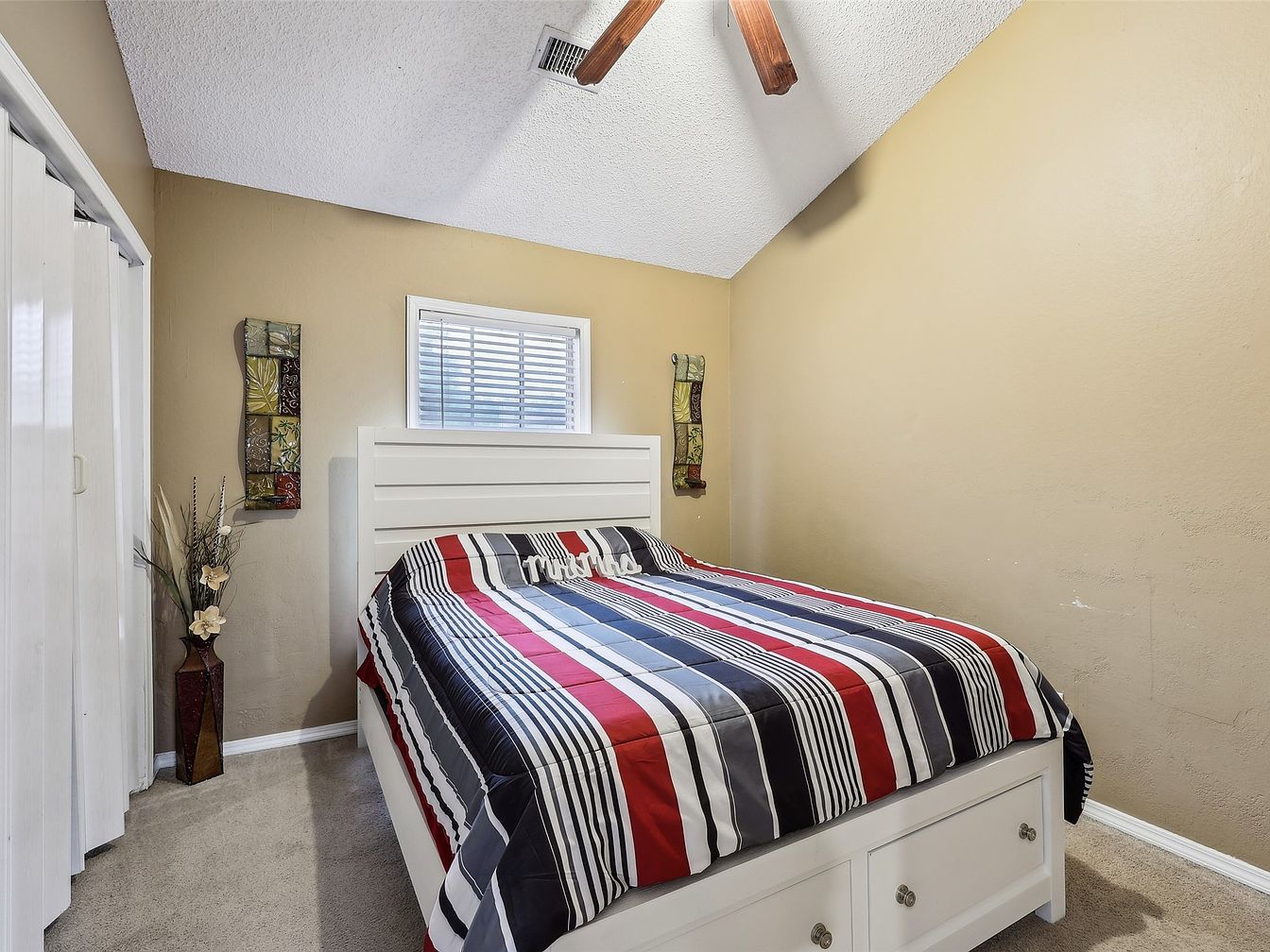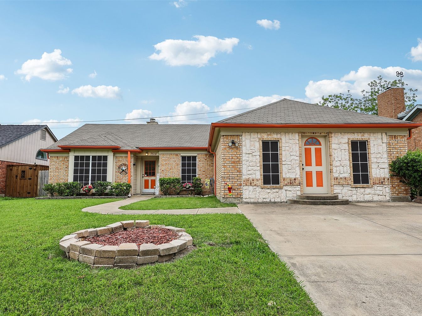 This charming single-story home, located in Rowlett, TX, showcases a traditional architectural style characterized by its brick and stone façade, complemented with a tasteful use of color accents on the doors and window trims. The interior features three bedrooms and two bathrooms, with the unique addition of a converted garage that serves as versatile living space with its own separate entrance. The living areas boast vaulted ceilings and include a dining room highlighted by a beautiful tiled, wood-burning fireplace. The kitchen is well-equipped with an electric range, double sink overlooking the backyard, and a cozy breakfast nook. Outdoor amenities include a large backyard with two storage sheds, a newly stained back fence, and a spacious patio perfect for entertaining. Priced at $299,900, this home provides excellent value in a convenient location with quick access to President George Bush Turnpike and Highway 66, close to shopping, dining, and entertainment options.