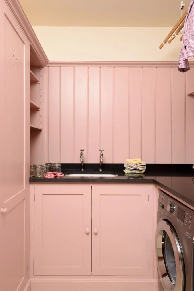 While many associate laundry rooms with light, airy colors, opting for a darker shade can add sophistication and create a cozy atmosphere. Darker tones like charcoal, navy, or forest green can make a statement, creating a more intimate and dramatic space. Complement these hues with metallic or wooden accents to break up the dark tones and add texture. A dark laundry room can be just as stylish and inviting as any other part of your home, offering a unique twist on traditional design.