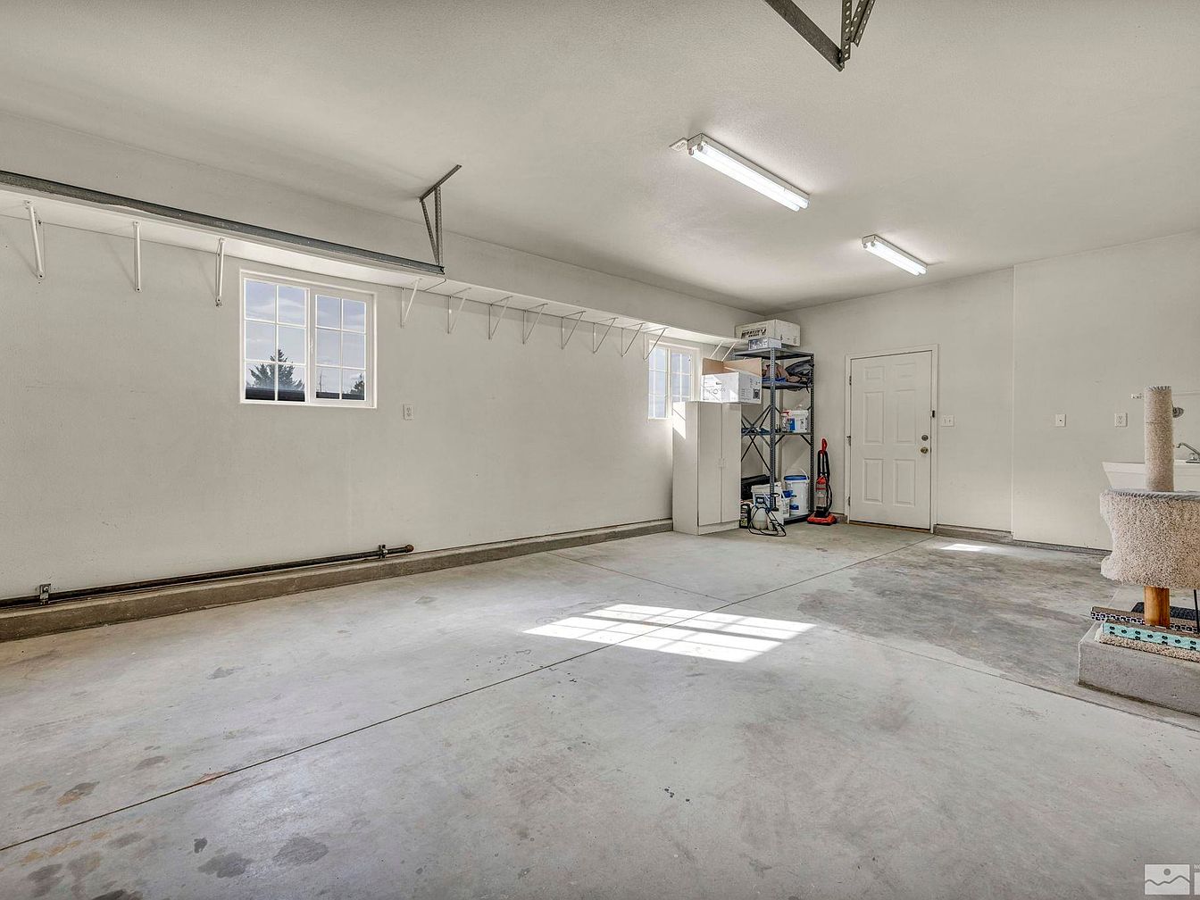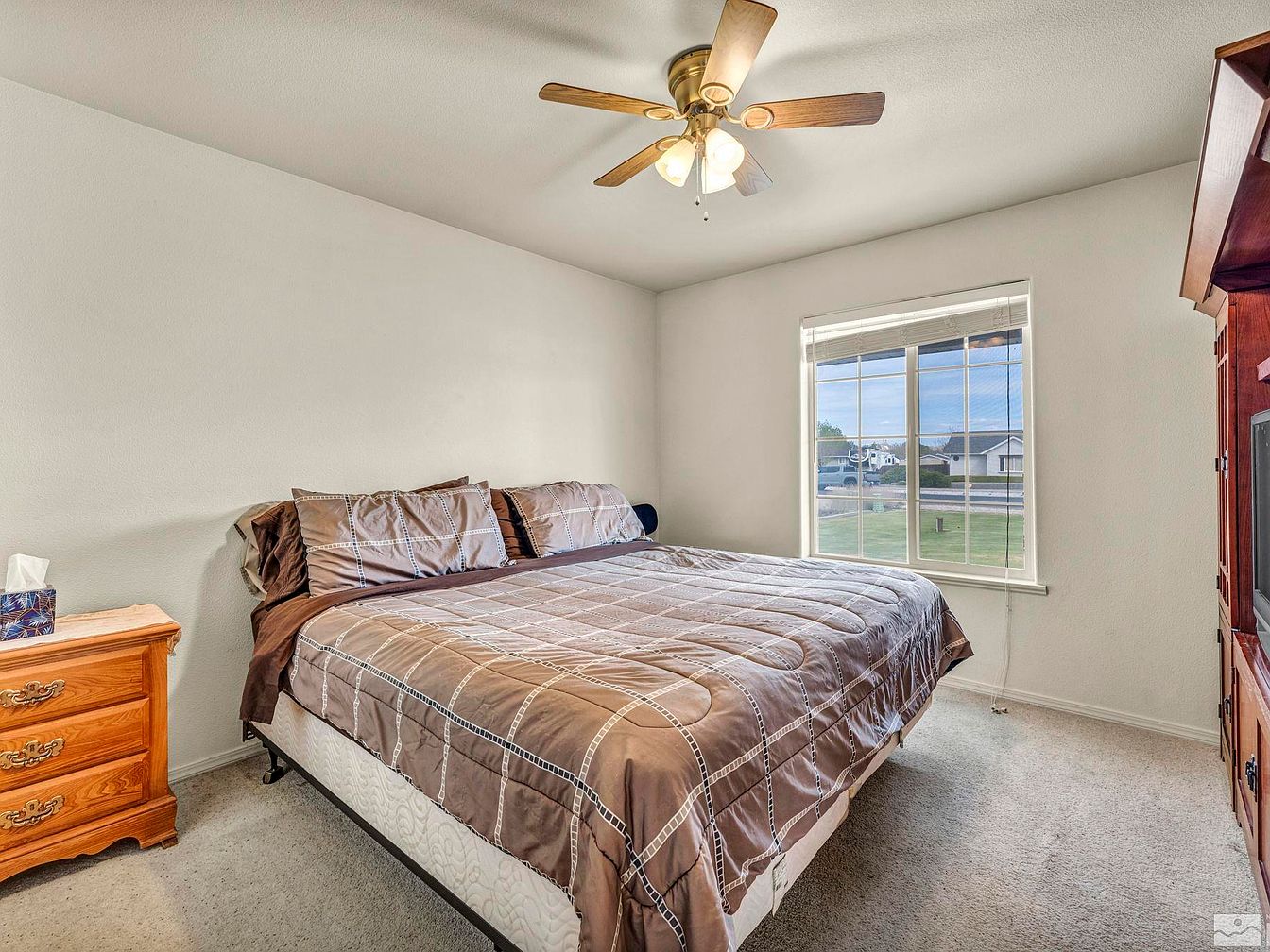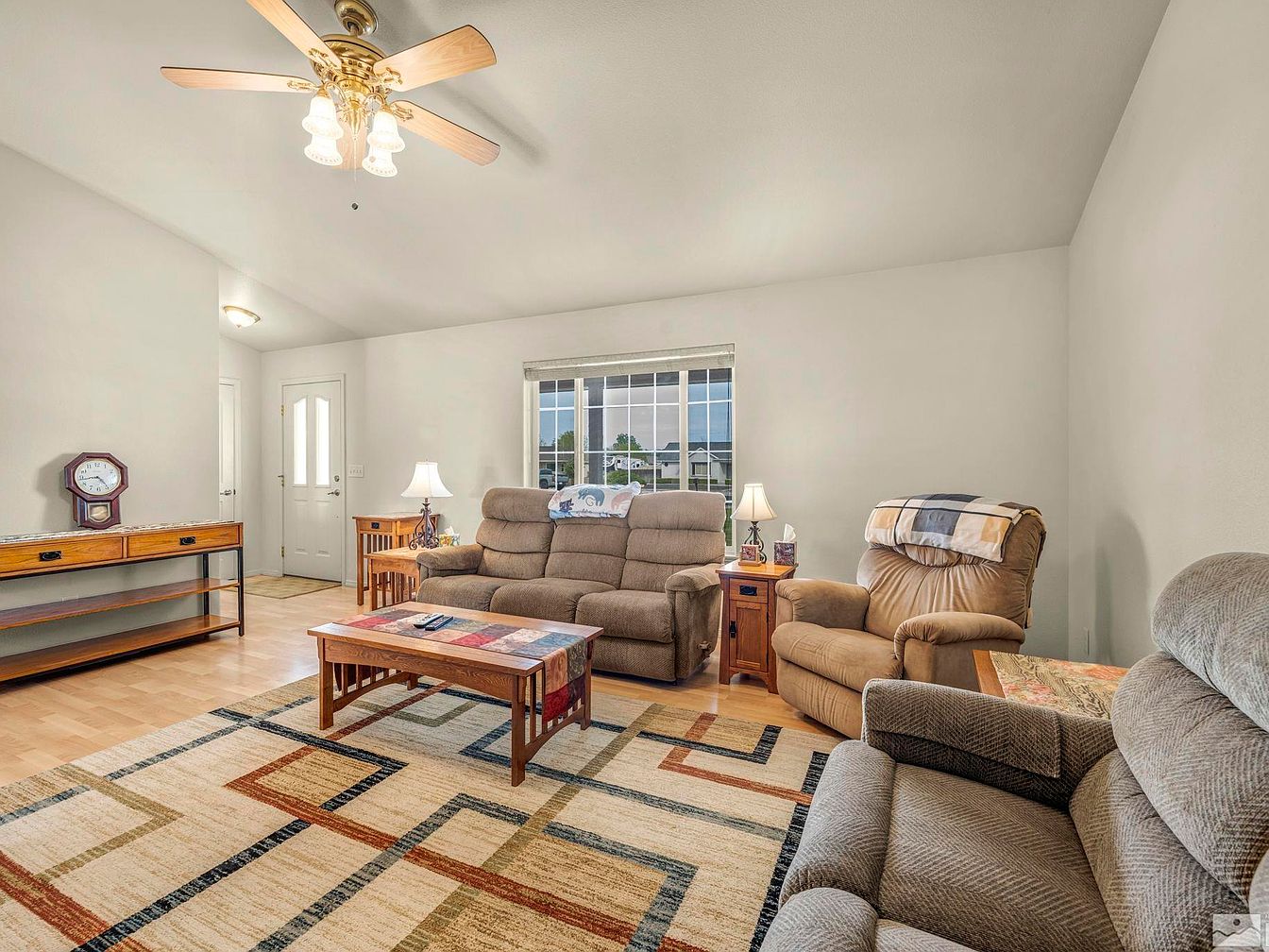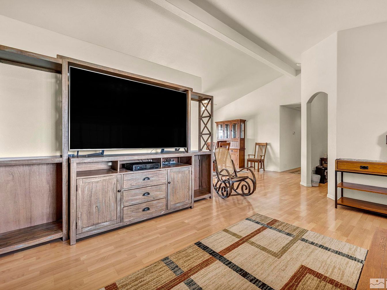 This modern farmhouse, located in one of the most desirable neighborhoods of Fallon, Nevada, is a true desert oasis sitting on a fully landscaped one-acre plot. The home features a spacious front yard with a large concrete driveway leading to a two-car garage, highlighting its generous outdoor space that includes large RV access. Inside, the property is well maintained, boasting tall vaulted ceilings and laminate wood flooring that add to the open and airy ambiance. The kitchen is equipped with stainless steel appliances, and a newer A/C unit ensures comfort during the hot summer months. While the year the home was built is not specified, recent upgrades such as the newer air conditioning system suggest attentive upkeep. The backyard serves as the “crown jewel” of this residence, designed with a resort-style patio, an in-ground heated pool usable year-round, and a covered pool patio that rivals those of luxury resorts. The lush backyard is complemented by grass and mature trees, perfect for entertainment and relaxation. The listing price for this stunning property is $630,000.
