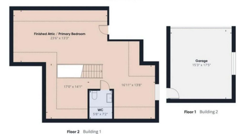 This upper floor exudes a sense of spaciousness and tranquility, featuring a generously sized primary bedroom, ideal for creating your private retreat. The adjacent finished attic space offers a versatile room, whether you choose to use it as a home office or an additional living area. A well-placed WC adds convenience, while the expansive closet space ensures ample storage. With a simple staircase leading down to the rest of the home, this upper floor blends style and functionality for comfortable living.