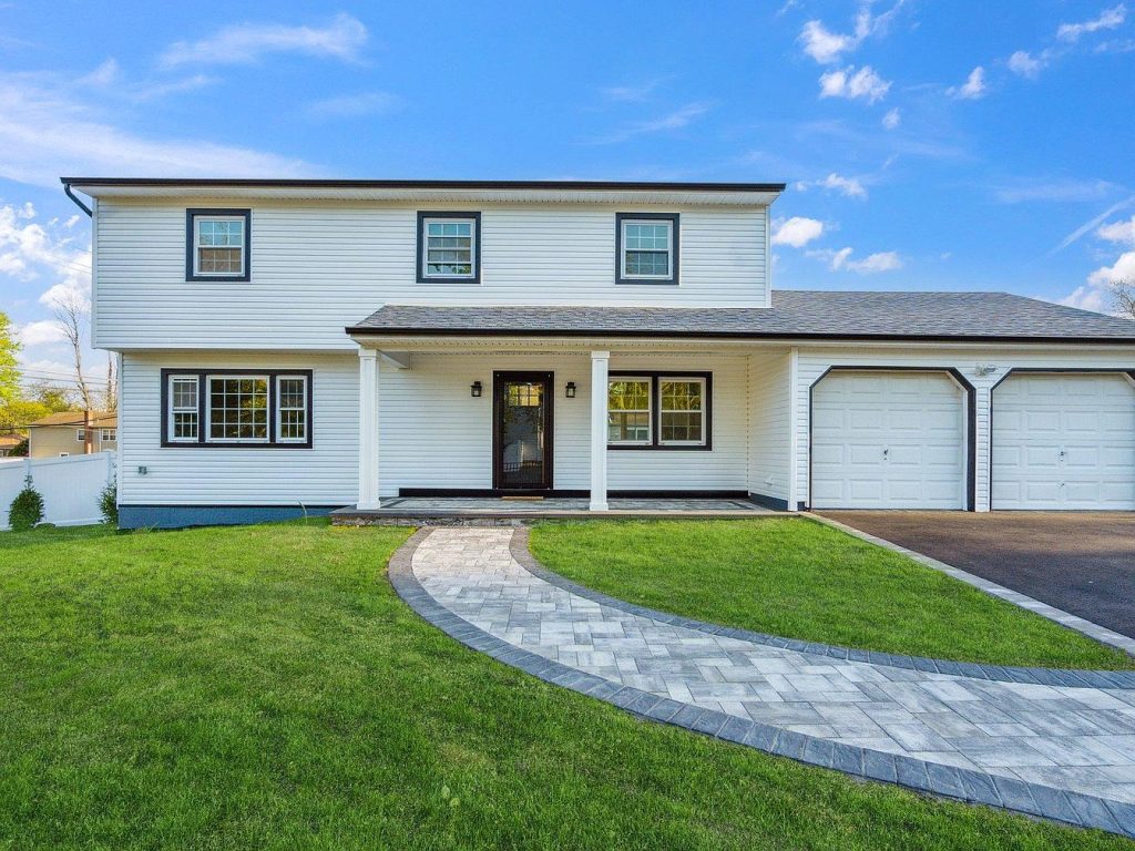 The design showcases a sophisticated modern architectural style featuring a striking black and white exterior that makes a bold statement. Inside, the home boasts exquisite white oak flooring that seamlessly flows throughout an open concept layout illuminated by abundant natural light from well-placed windows. High-end finishes include beautiful woodwork and crown molding that add sophisticated character to every room. The gourmet kitchen is outfitted with state-of-the-art premium appliances and designer finishes, complemented by both a casual breakfast area and a formal dining room ideal for entertaining. The inviting den features a cozy fireplace creating a relaxing ambiance. Bathrooms are luxuriously appointed with contemporary fixtures and finishes. Situated in the highly coveted Half Hollow Hills school district, this property offers a perfect blend of timeless design and modern functionality. Priced at $1,175,000, this exceptional home promises carefree living in a prestigious neighborhood.