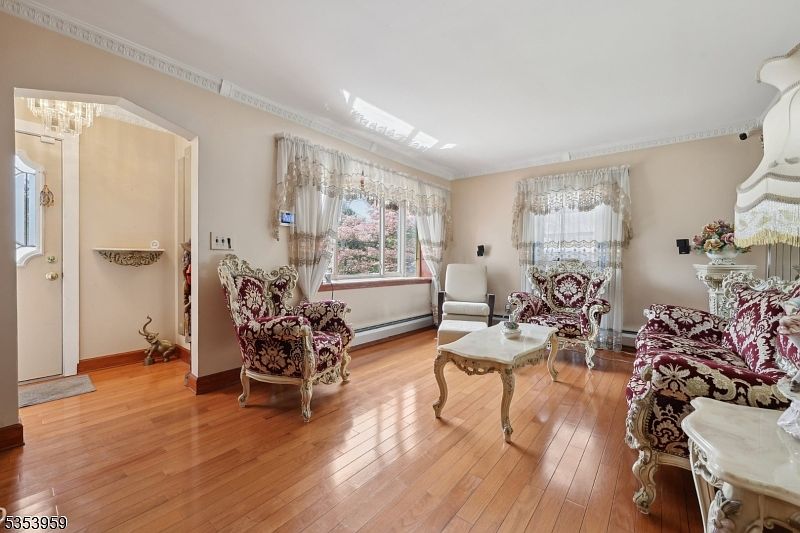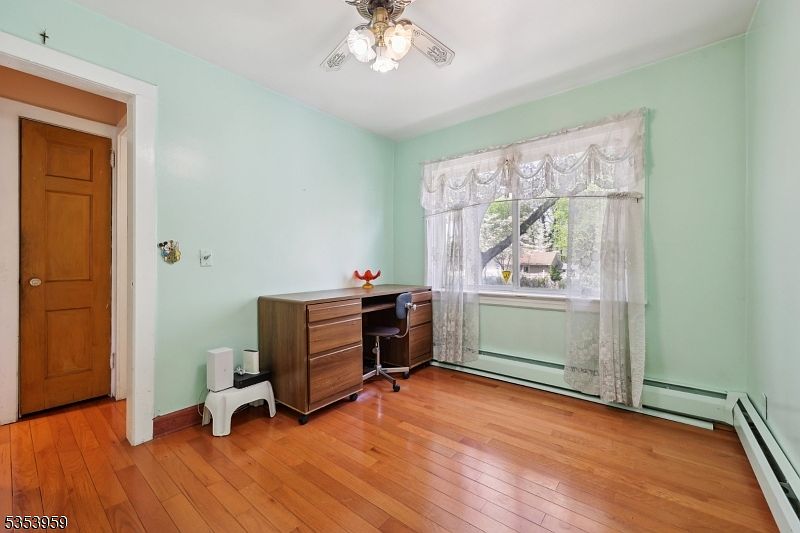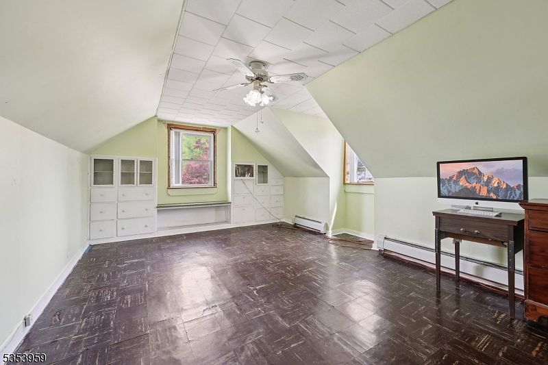 Welcome to this charming Cape Cod-style home nestled in the heart of Maywood, New Jersey. This inviting residence features 3 bedrooms and 2 full bathrooms, ideally designed with classic architectural elements including a steep, gabled roof and dormer windows. The first floor comprises two bedrooms, a full bathroom, gleaming hardwood floors, a bright living room highlighted by a bay window, and a spacious eat-in kitchen. Upstairs, a large walk-up attic serves as a third bedroom and study area with ample closet space, offering flexible living arrangements. The finished basement extends the living space further, with an additional full bathroom featuring a relaxing sauna, a bonus living room, and a dedicated laundry area. The exterior presents a sprawling backyard perfect for entertaining, gardening, or play, plus a covered porch with a separate entrance to the basement. Additional conveniences include a private driveway, a detached garage, and two storage sheds. This home offers a perfect blend of space, charm, and potential on a generous plot in a convenient location near parks, schools, shopping, and major highways. Listed at $550,000, this property is being sold As-Is, presenting a wonderful opportunity to make this classic Cape Cod your own.