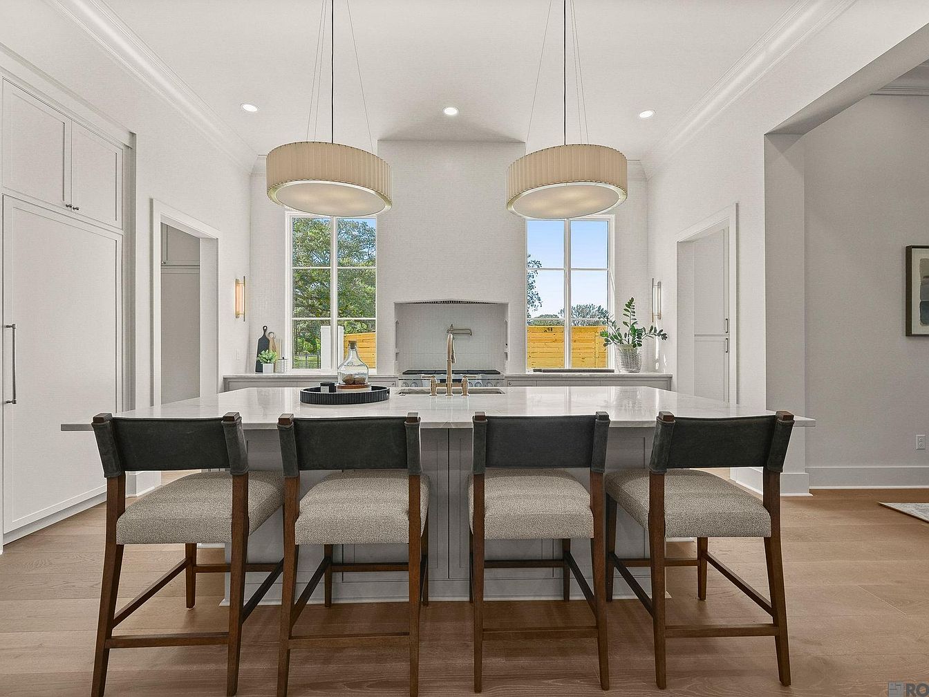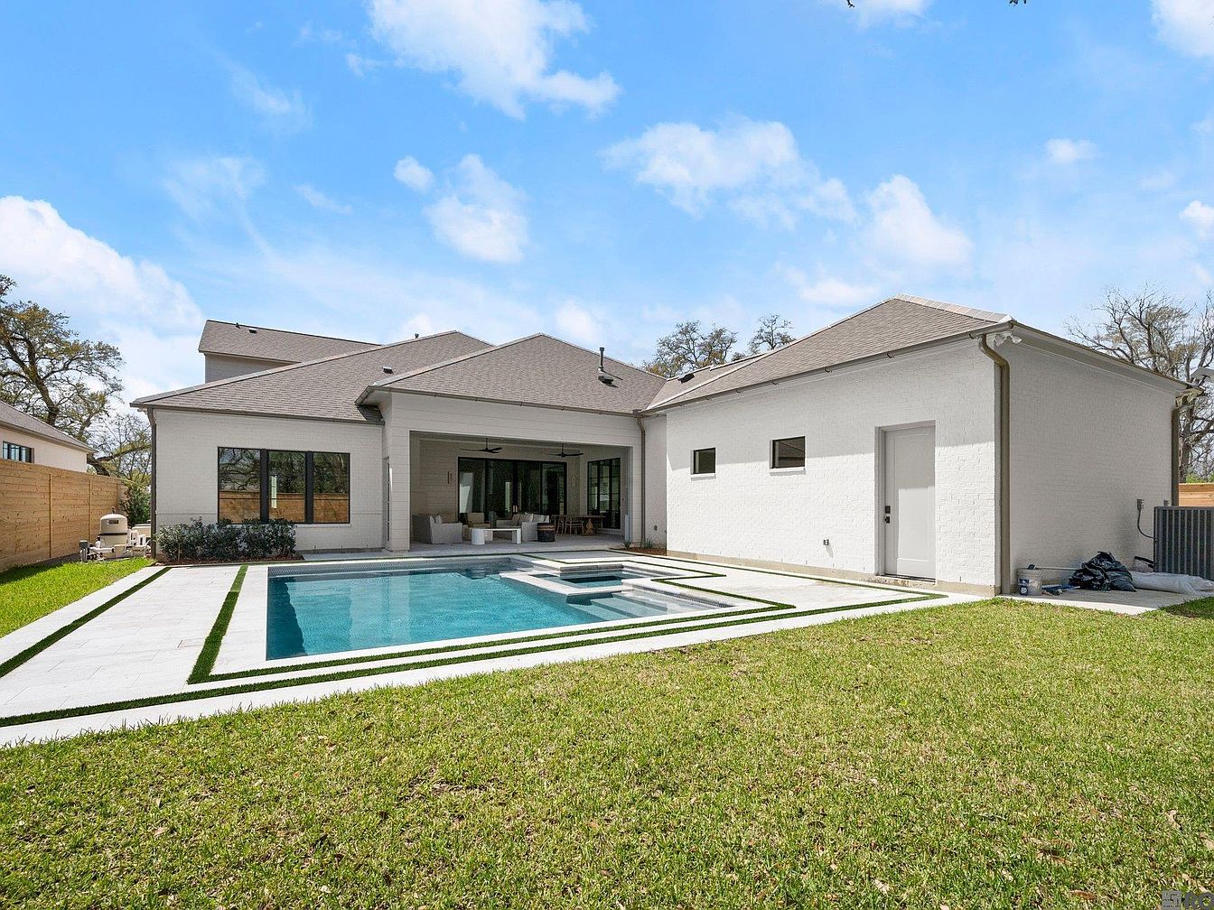 Welcome to 7845 Highland Road, located in the prestigious Highland Road area of Baton Rouge, Louisiana. This stunning single-family home exemplifies transitional architectural style, blending clean lines and timeless elegance with modern sophistication. The residence spans a spacious 4,493 square feet of living space and is listed for $2.2 million, offering luxury living in a coveted neighborhood. Designed by Craft Interiors, the home features high-end lighting fixtures from Visual Comfort, Arteriors, and Regina Andrew, adding an extra layer of refined ambiance. The layout includes five bedrooms with a loft, a versatile wine room or study, and a chef’s kitchen equipped with the largest butler pantry in the area. Smart home technology is integrated throughout, including Lutron Caseta lighting control, smart doorbells, locks, smoke detectors, and a Sonos audio system. The house benefits from multiple heating and air units for climate control in every space. Outdoors, enjoy an 848 sq ft covered patio with heating, cooling, and electric retractable screens, alongside a lavish gunite swimming pool with a hot tub, surrounded by a blend of turf and quartzite landscaping, and a cozy built-in fire pit. This remarkable home combines luxury, comfort, and cutting-edge technology, offering not just a residence but an elevated lifestyle in Baton Rouge’s scenic and affluent Highland Road community.