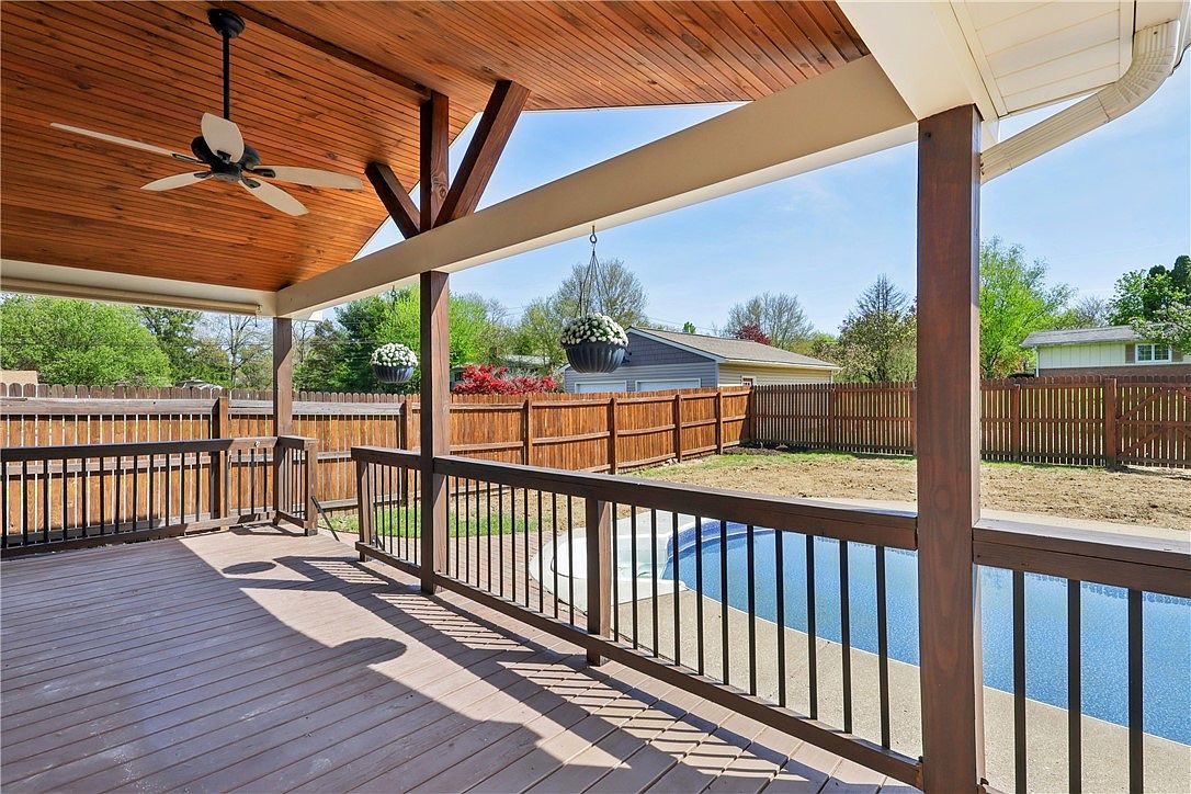 This dignified ranch-style home, located in Beaver Falls, PA, offers a delightful blend of charm and craftsmanship. Though the exact year it was built is not specified, the home exhibits timeless architectural details such as crown molding, gleaming hardwood floors, and cozy fireplaces that suggest quality construction. It is beautifully positioned on a large corner lot that provides both privacy and space, including a tranquil backyard oasis featuring a glorious inground pool and ample area for gardening or playsets, perfect for family enjoyment and entertaining. The interior highlights an expansive living room anchored by a bay window and fireplace, setting an inviting tone throughout the home. The kitchen is well-appointed with granite countertops, stainless steel appliances, and abundant cabinetry, conveniently bordered by a dining area and breakfast nook with views and access to the back deck and pool area, making entertaining effortless. The first floor also includes a laundry area for added practicality. The owner’s suite is a serene retreat complete with a full bathroom, walk-in closet, and French doors opening to the backyard sanctuary. The lower level offers grander spaces designed for relaxation and entertainment, including a family room with another fireplace, a fully equipped kitchen with a bar, a bonus room, a full bath, and generous storage space. This home is a superb example of aesthetic appeal combined with functional living. Listed at $380,000, this property is a magnificent offering in a desirable location, ideal for those seeking a home where both elegance and comfort are paramount.
