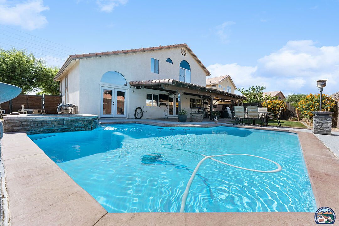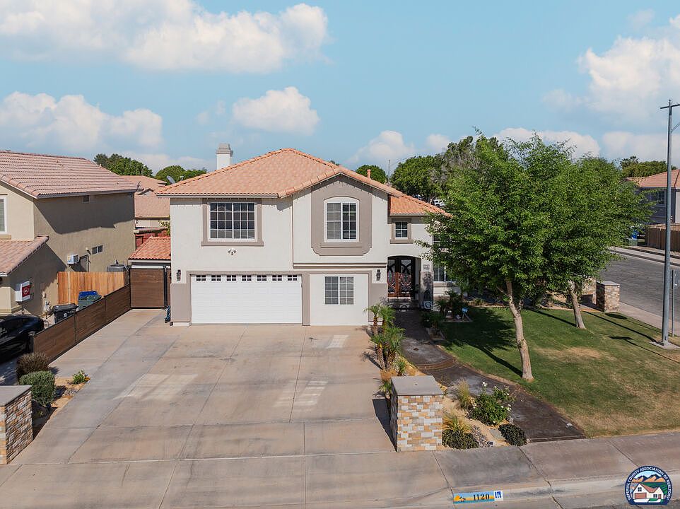 This stunning two-story family retreat located at 1120 Panno Rd, Brawley, CA exemplifies a Mediterranean architectural style, characterized by its elegant clay tile roof and stucco exterior. Built in an established neighborhood near Pioneers Memorial Hospital, this home offers 2,281 square feet of beautifully upgraded living space on a spacious 6,751 square foot corner lot. Though the original build year isn’t specified, the home features several recent renovations including a freshly refreshed exterior stucco and a newly renovated main bedroom ensuite bathroom with spa-like amenities such as a soaking tub and waterfall shower. Offering comfort, style, and functionality, the property’s backyard is an entertainer’s paradise with a covered patio, sparkling pool, jacuzzi, and a custom barbecue area complete with ceiling fans and flat-screen TVs for family gatherings and game nights. Privacy is enhanced by a new fence and gates, while a sprinkler and drip system maintain lush landscaping with ease. Additional storage is available in a custom-built shed. Inside, the open layout showcases vaulted ceilings, recessed lighting, crown molding, and a cozy living room fireplace that flows into a chef’s kitchen equipped with quartz countertops, GE stainless steel appliances, a wine fridge, apron sink, water filtration system, and stylish backsplash. The main bedroom retreat features a fireplace, wide-screen TV, a spacious walk-in closet, and a luxurious renovated ensuite bathroom. Upstairs, four additional spacious bedrooms and a convenient laundry area add to the home’s practical design. The fully insulated and finished garage with epoxy flooring and a mini-split system provides flexible space for a man cave or home gym. Comfort is guaranteed year-round with two AC units, tinted windows, plantation shutters, and robust 200-amp electrical service. Listed at $569,000, this turn-key home harmoniously blends high-end upgrades and meticulous attention to detail, making it a rare find in the Brawley market that is ready for immediate move-in and family enjoyment.