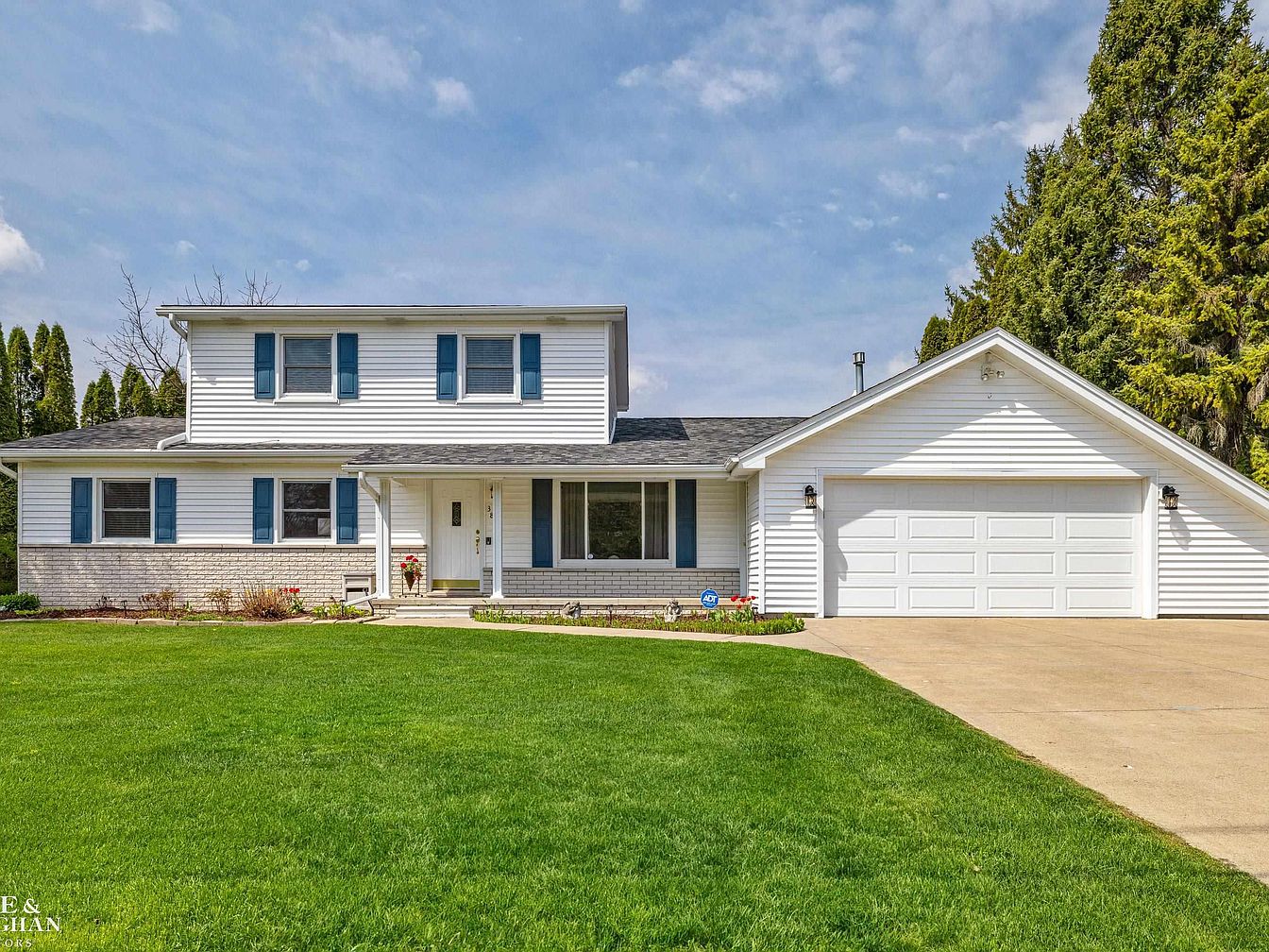 This charming home, located in Fort Gratiot, MI, represents a classic suburban architectural style with its rectangular shape, gabled roof, and symmetrical window placement featuring blue shutters that accent the white exterior. Likely built in the latter part of the 20th century, this four-bedroom, two-and-a-half-bath residence offers a serene retreat nestled on the private shores of Lake Miriam. While the exact year of construction is not specified, the home’s well-maintained landscaping and updated features such as a light-filled sunroom, a stone gas fireplace, and a backyard gazebo with seasonally adaptable amenities suggest recent renovations enhancing its lakeside living appeal. Priced at $425,000, the home presents an inviting living space that spans a substantial square footage suitable for families and entertaining guests. The spacious lot complements the peaceful setting, emphasizing the property’s picturesque and private lakeside environment, perfect for year-round enjoyment and relaxation.