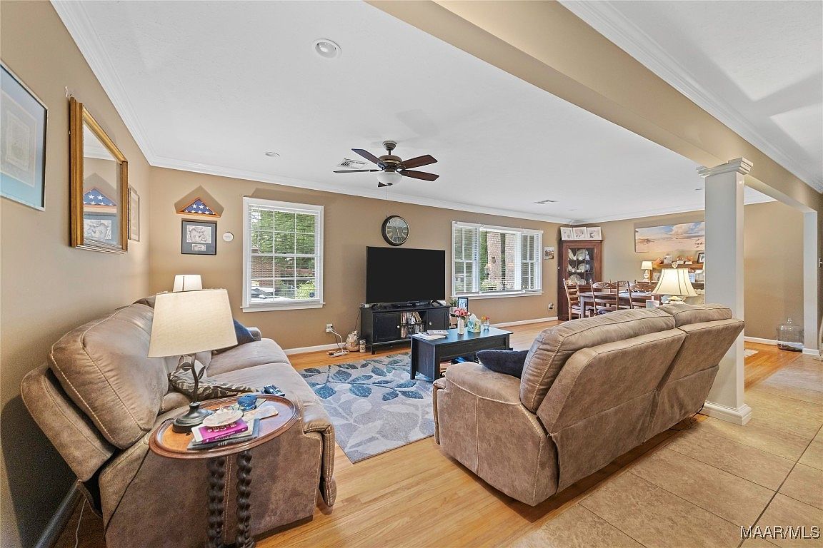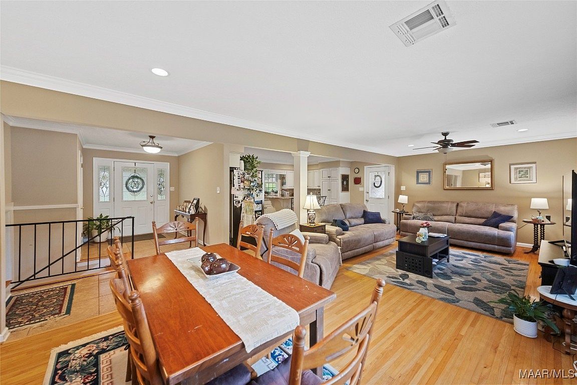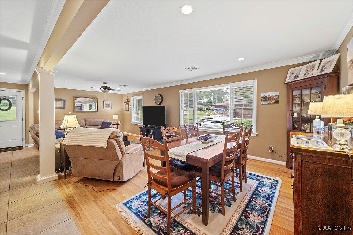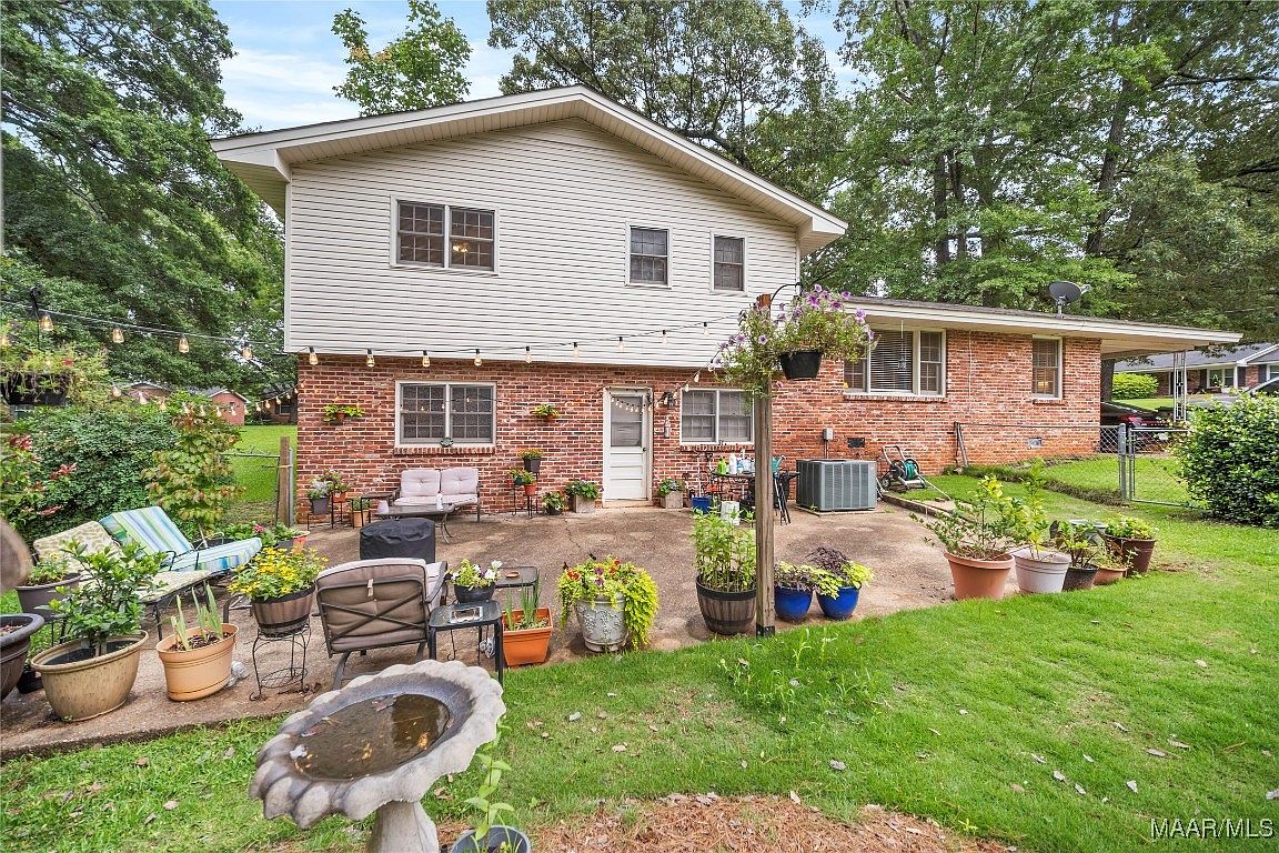 This home at 901 Green Forest Drive in Montgomery, Alabama, showcases a classic mid-20th-century split-level architectural style, characterized by its brick lower level and a light-colored upper story with a pitched roof. Nestled in the established Dalraida neighborhood, known for its mature trees and family-friendly atmosphere, the property offers a serene and welcoming outdoor space with a spacious patio adorned with string lights and abundant potted plants, perfect for entertaining or relaxing. Built several decades ago, the home retains its solid construction while likely having undergone recent updates to maintain comfort and modern living standards, although specific renovations are not listed. It features 4 bedrooms and 2 bathrooms, providing ample living space suitable for families or investors. The property is competitively priced at $194,500, presenting an attractive opportunity in a conveniently located area with easy access to shopping, dining, schools, and downtown Montgomery.