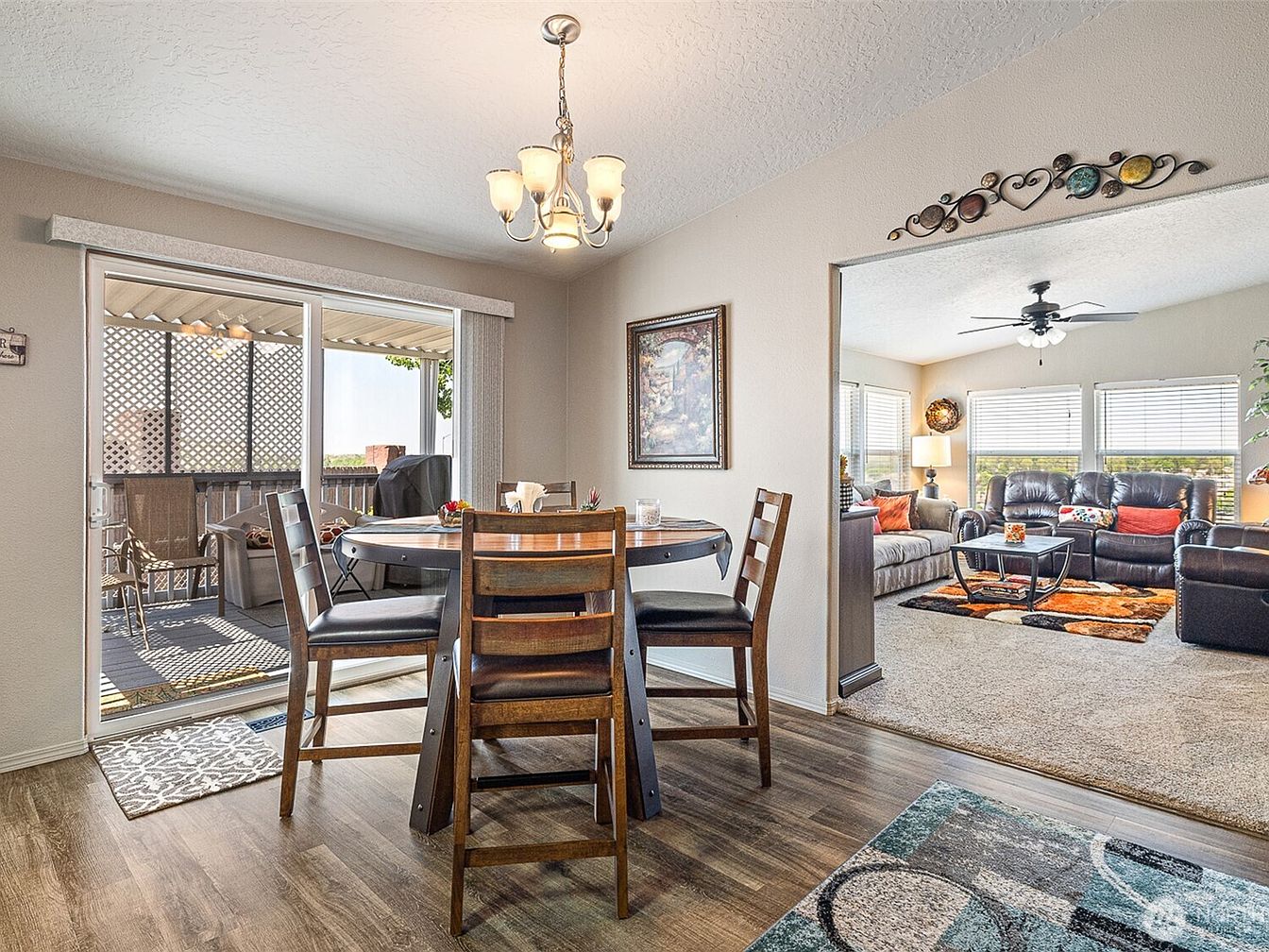 This charming home is situated in a highly sought-after South Richland neighborhood in Richland, WA, offering spectacular panoramic views of the river and cityscape. The architectural style reflects a modern, practical design with a focus on comfort and functionality, accentuated by vaulted ceilings that create an open and airy ambiance. Although the listing does not specify the year built, the home has been meticulously maintained and recently updated to meet contemporary standards. Renovations include new interior and exterior paint, updated laminate flooring, fresh carpet, modern cabinetry with high backsplashes, stainless steel appliances, and upgraded plumbing and electrical fixtures. The master bathroom features a luxurious mud-set tile shower, and both kitchen and bathrooms have been recently remodeled. The property boasts extensive zero-maintenance landscaping, multiple outdoor living areas, and a large two-room 12×20 storage shed in excellent condition. Additional highlights include formal living and family rooms, ceiling fans, a pantry, and plentiful parking with extra concrete space. Centrally located near shopping, restaurants, and freeways, this home is listed at $227,500.