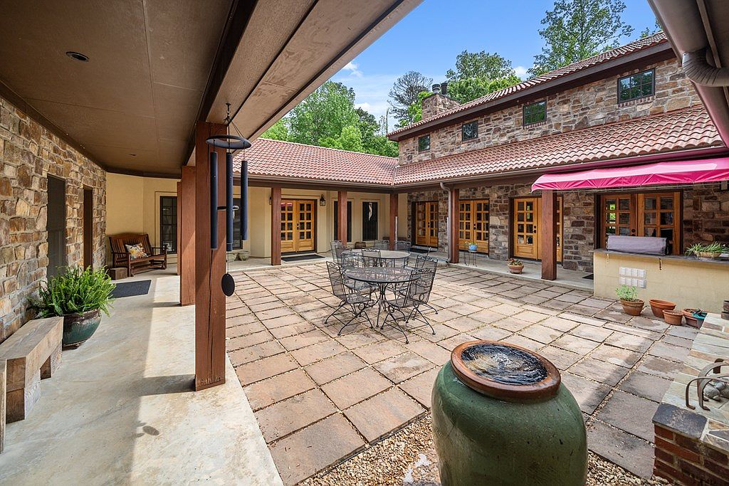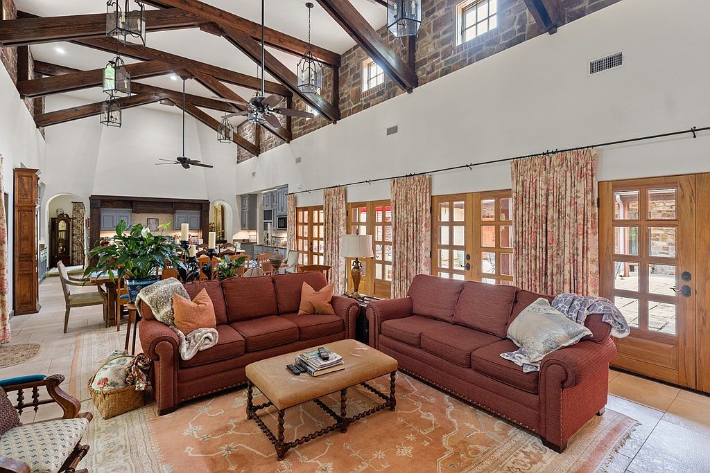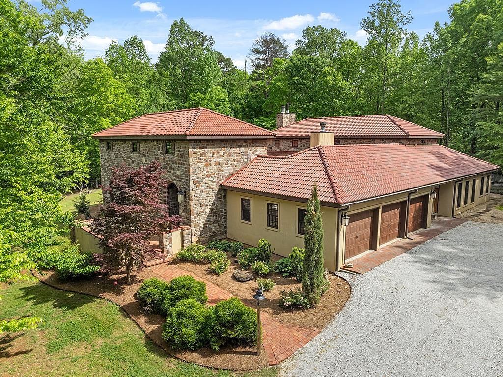 This stunning home is a custom-built Italian Villa located in Banner, Mississippi. Nestled on a private 20-acre plot, this unique residence exudes Mediterranean charm with its classic stone and stucco exterior topped by traditional red clay tile roofs. Spanning 4,200 square feet on a single level, the villa offers a spacious and thoughtfully designed layout that includes four bedrooms and four and a half bathrooms. The interior boasts an impressive family room with soaring 18-foot ceilings, opening seamlessly to a chef’s kitchen outfitted with double islands, high-end appliances, and exquisite imported tile from Portugal. Additional key features include a dedicated media room, a separate office space, and a three-car garage. For hobbyists and those needing workspace, a large barn/workshop is also part of the property, perfect for both work and recreation. The home also features a central courtyard adorned with tranquil water features, providing direct access to a separate “Casita” with its own private entrance. Listed at $959,000, this elegant estate harmonizes luxury living with serene country seclusion. While the construction year is not specified, the home’s presentation and high-end finishes suggest that it has been well-maintained and recently updated to meet modern standards.