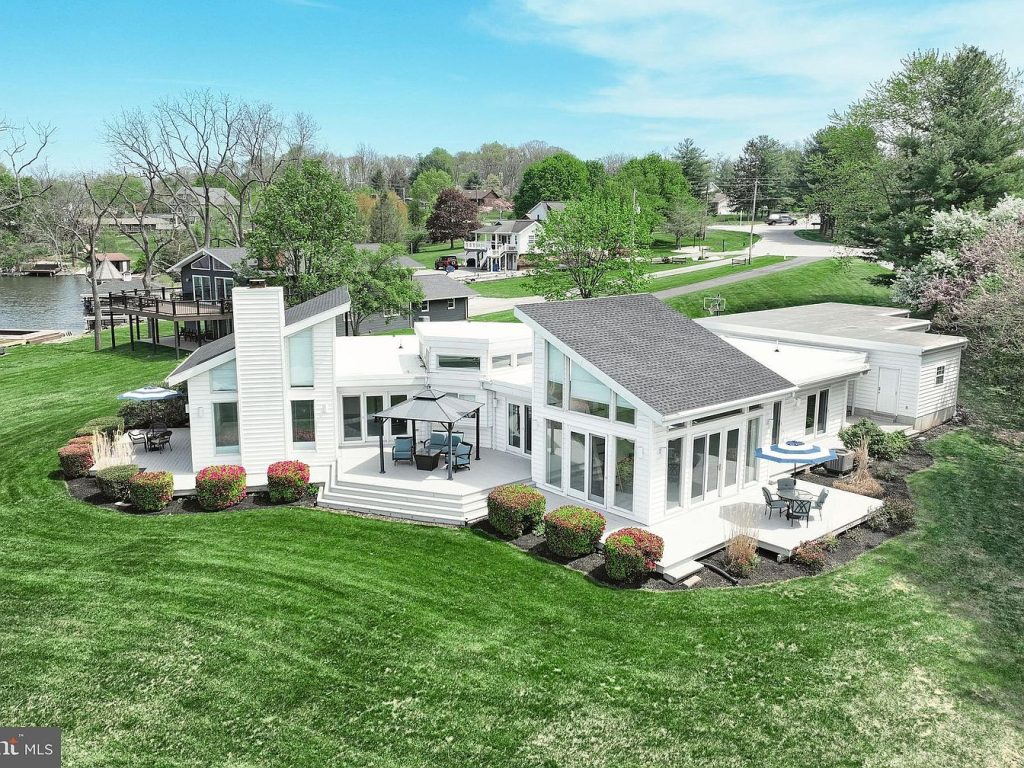 This stunning custom-built contemporary home is situated in the exclusive gated community of Lake Meade, East Berlin, PA. Offering an exceptional lakeside lifestyle, the property boasts one of the finest waterfront lots with unbeatable 180° panoramic lake views. The residence encompasses over 2,200 square feet of meticulously designed interior space, tailored for discerning buyers seeking either a tranquil full-time sanctuary or an impressive weekend retreat. Featuring a modern architectural style, the home boasts a soaring open-concept layout with vaulted ceilings and transom windows that flood the space with natural light. Interior highlights include rich cedar-stained gray hardwood floors, a great room with a fireplace, and expansive ceiling-to-floor windows that beautifully merge indoor elegance with outdoor serenity. The home includes four bedrooms and 2.5 baths. Outdoor amenities cater to lake living with three floating docks, two boat slips, an aluminum boat lift with electrical service, wraparound walkways and decking, an oversized two-car garage, and a separate garden garage & workshop. This exceptional lakeside property is listed at $1,079,000 and presents a rare opportunity to embrace an elevated waterfront lifestyle.