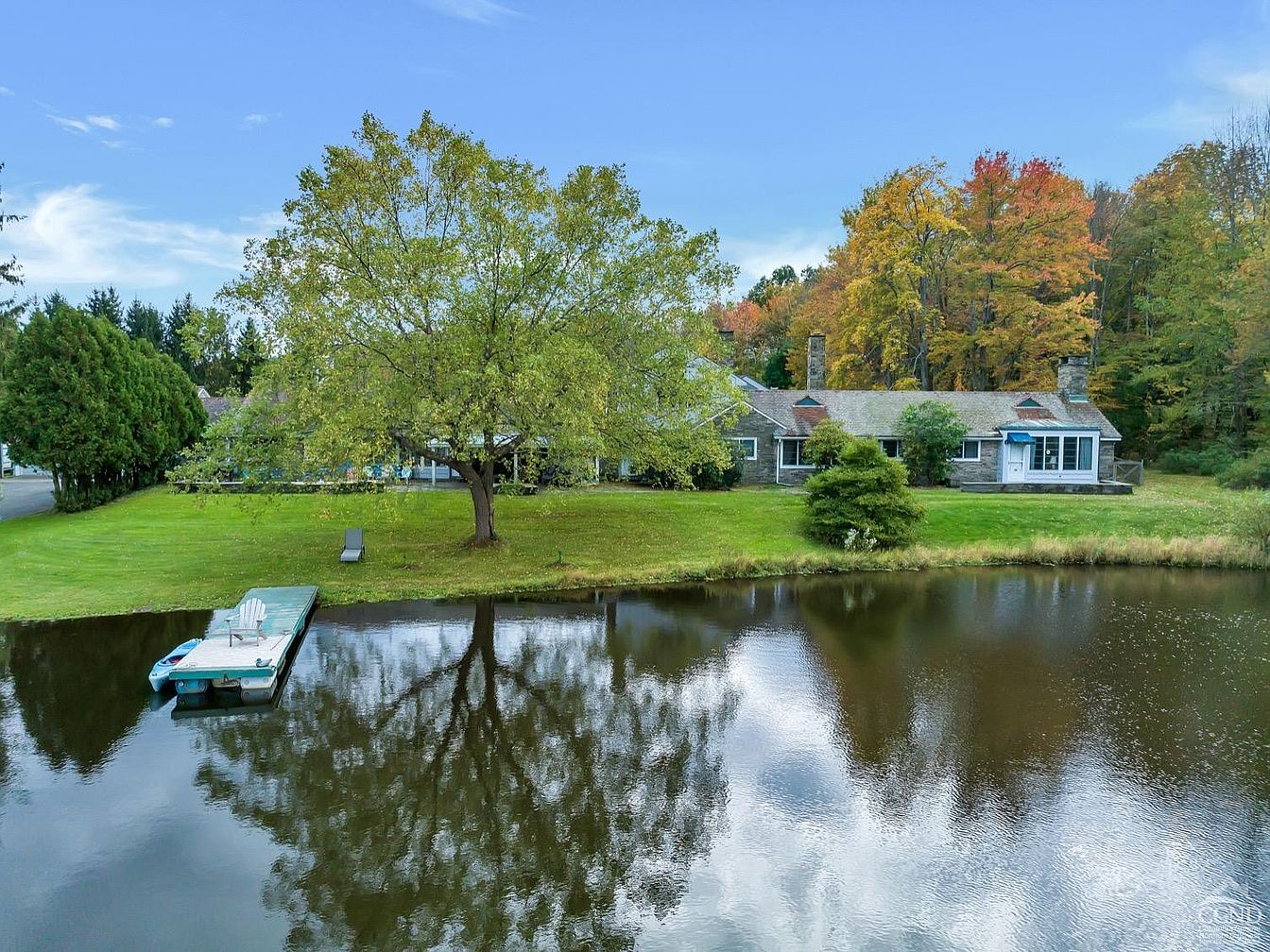 This exceptional estate, known as Hill Hallow, is a historic property located in Windsor, NY. Nestled on a vast 84.33-acre plot of pristine woodlands, it features a magnificent main house and a charming stone guest house overlooking a private lake. The guest house offers an additional three bedrooms featuring floor-to-ceiling bookshelves, rich wood paneling, and a cozy fireplace, ideal for quiet retreat or study. Outdoor living is equally impressive with a sprawling patio that overlooks the tranquil lake, perfect for al fresco dining and peaceful lakeside relaxation. This remarkable estate offers abundant opportunities for outdoor recreation including fishing, boating, hiking, and wildlife observation, making it an idyllic sanctuary for nature enthusiasts. Conveniently located near Binghamton, the estate is accessible to urban amenities such as shopping, dining, cultural attractions, and an airport. Listed at $2,900,000, this property embodies historic grandeur and modern comfort on a sprawling woodland estate.