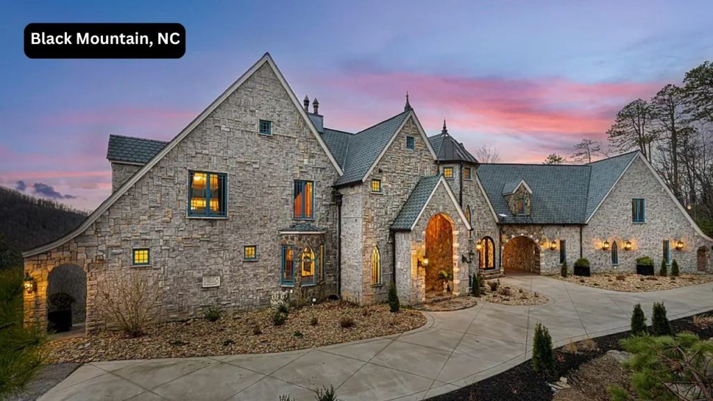 Set atop 10 private acres in Black Mountain, NC, this timeless European-inspired residence offers four bedrooms, five bathrooms, and 5,934 sq ft of elegant living. Priced at $2,350,000, the home features breathtaking long-range views, gothic windows, intricate stonework, stained glass, and luxurious marble and hardwood floors. Built-in 2006, it blends grandeur with warmth—perfect for both lavish entertaining and serene mountain living.