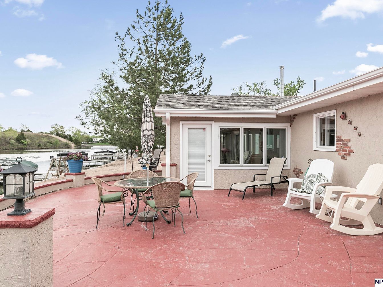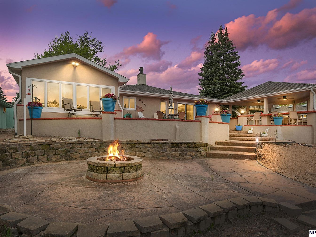 This charming single-story home located in Fremont, Nebraska, offers a warm and inviting outdoor space perfect for relaxation and entertaining. Featuring a contemporary ranch architectural style, the residence is priced at $675,000. The home sits on a spacious plot with beautifully landscaped terraced yards and a dedicated fire pit area, ideal for cozy evenings outdoors. While the exact year the home was built and recent renovations are not provided, the well-maintained exterior and modern patio design suggest attention to detail and possible updates. This property boasts an expansive patio area with comfortable seating arrangements, large windows allowing ample natural light, and a covered porch area for outdoor dining and gatherings, enhancing both indoor and outdoor living experiences.