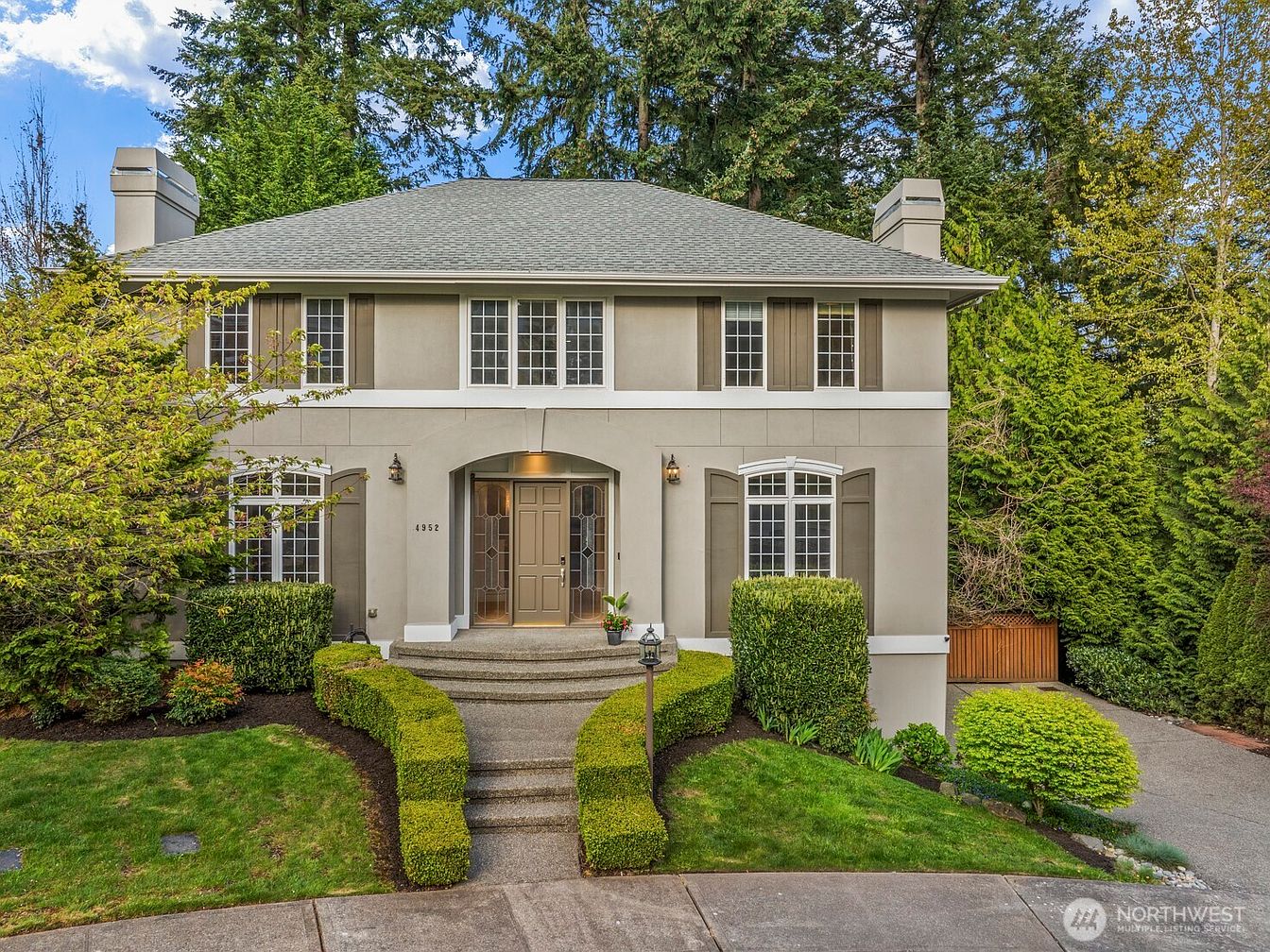 This exquisite home showcases a classic and elegant architectural style with a symmetrical facade, boxed windows with shutters, and a covered front entry that exudes timeless charm. Located in Bellevue, Washington, in the prestigious Silverleaf neighborhood of Lakemont, the residence is ideally positioned on a tranquil cul-de-sac that leads to a lush greenbelt, offering exceptional privacy. While the exact year of construction is not specified, the home has been recently updated and features a freshly finished walk-out basement providing a versatile space described as a home within a home. The interior boasts soaring ceilings and expansive windows that flood the living spaces with natural light, creating a welcoming atmosphere ideal for entertaining. The chef’s kitchen and multiple gathering areas support seamless indoor-outdoor living, with direct access to a spacious deck surrounded by serene mature trees. This property is part of the highly regarded Issaquah School District, adding significant value for families. Priced at $2,800,000, the home offers a blend of luxury, functionality, and nature just minutes away from I-90, shopping, parks, and hiking trails.