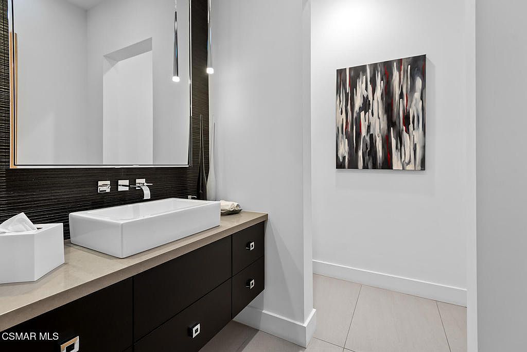 This absolutely extraordinary custom single-level contemporary home is located in the prestigious guard-gated community of Lake Sherwood in Thousand Oaks, California. Professionally designed and masterfully built to perfection, this one-of-a-kind residence offers panoramic views of the golf course and surrounding mountains. The architectural style is modern contemporary, characterized by clean lines, open-concept spaces, and seamless indoor-outdoor living. Listed at $7,650,000, this home represents a rare and premium offering in Thousand Oaks with a remarkable design and impeccable attention to detail, making it truly unparalleled in the market.
