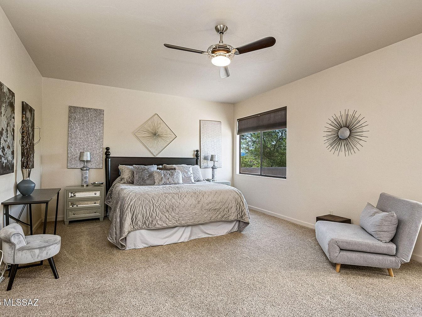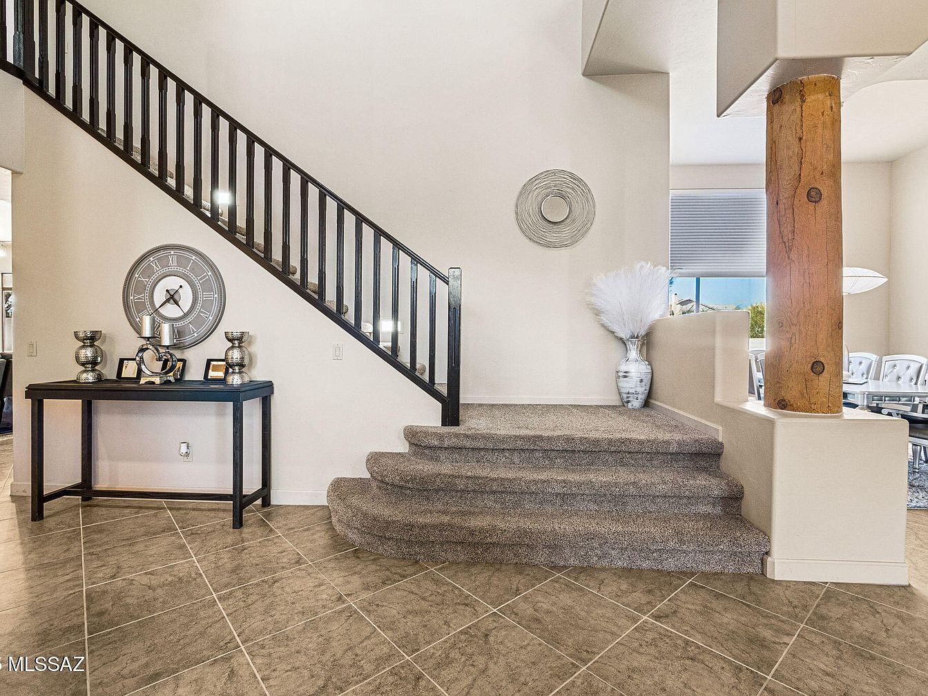 This exquisite Tucson residence, located in the prestigious El Conquistador Golf Course community of Oro Valley, AZ, showcases a stunning Southwestern architectural style characterized by its smooth stucco exterior and flat rooflines, seamlessly blending desert elegance with modern luxury. While the original build year is not specified, the home has been thoughtfully refreshed to include recent upgrades such as a new water heater and water softener, ensuring long-term comfort and reliability. Priced attractively at $624,999, this home offers an exceptional value for luxury desert living. The property boasts a grand presence with a dramatic foyer that features soaring ceilings and expansive windows that bathe the interior in natural light, highlighting the stylish and comfortable design. The kitchen has been updated with light, bright finishes and contemporary colors, creating a warm and inviting space perfect for both entertaining guests and enjoying everyday meals with breathtaking views of the Catalina Mountains and lush golf course fairways. The low-maintenance, manicured backyard is a true entertainment haven, complete with a deep covered patio ideal for al fresco dining or relaxing under the serene Arizona sky, offering privacy and postcard-worthy scenery. Upstairs, the luxurious primary suite serves as a private retreat with an expansive walk-in closet, a spa-inspired bathroom featuring a designer shower, and a private deck that offers resort-style views. Residents have convenient access to a host of amenities at the El Conquistador Golf & Tennis Club, including championship golf, swimming pools, tennis courts, pickleball, a state-of-the-art fitness center, and fine dining, all just steps from the front door. This home represents an elevated lifestyle in one of Tucson’s most sought-after locations.