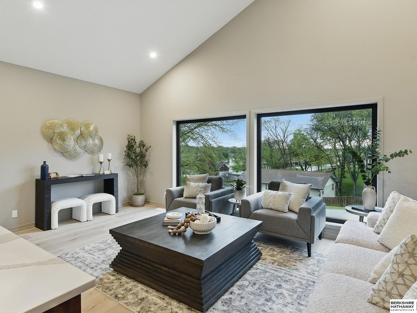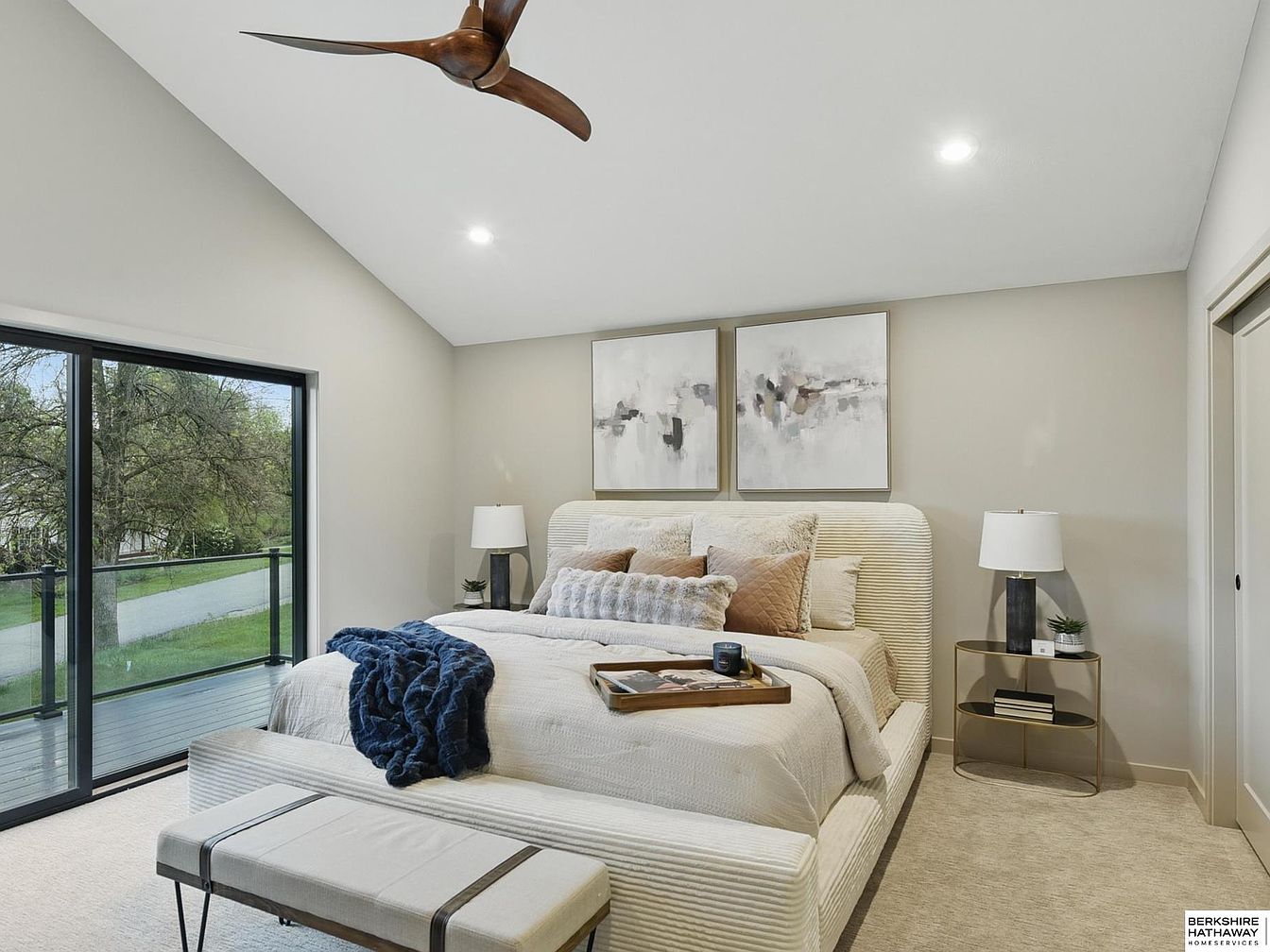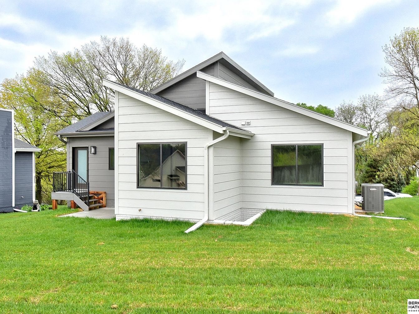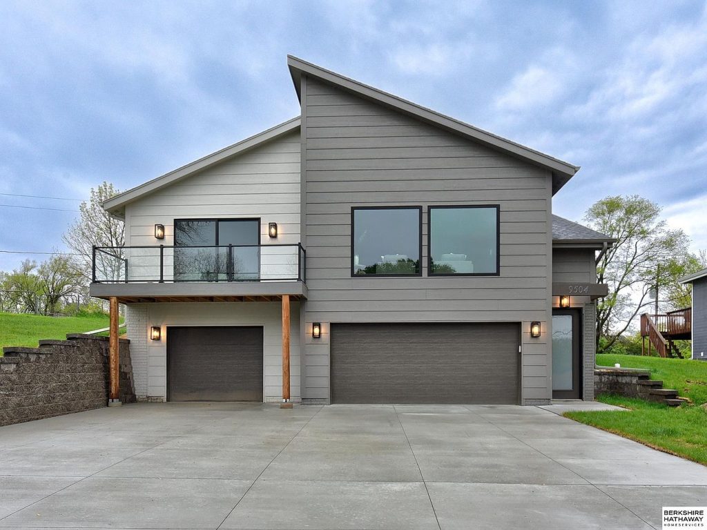 This striking custom home in Plattsmouth, Nebraska, embraces a contemporary architectural style characterized by clean lines and a harmonious blend of light and dark exterior materials. The raised ranch design features a distinctive slanted roof and large floor-to-ceiling windows that perfectly capture the breathtaking views of Beaver Lake. Built with quality craftsmanship, this home was designed for both entertaining and relaxation. The property includes 3 spacious bedrooms and 2 full bathrooms on the main level, including a luxurious primary bath equipped with dual sinks and a full tile shower. A unique feature is the 370 sq. ft. suite with its own bathroom located off the garage on the ground level, ideal for guests seeking privacy after enjoying the lake. Other notable details include custom stained cabinets throughout the home, a deck off the primary bedroom offering stunning sunrise views, and a large concrete driveway leading to a dual garage. Although the year built and recent renovations are not explicitly stated, the home’s modern appearance and finishings indicate careful, recent construction or updates. Listed at $459,000, this property offers exceptional value for a custom lakefront home with an approximate total living area that combines the main level and guest suite.
