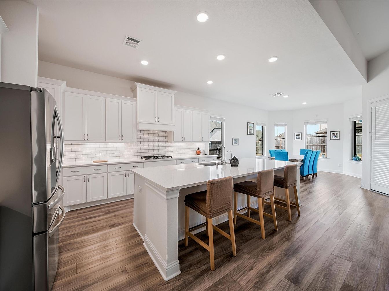 This beautiful home in Spring, Texas, exemplifies a modern 1-story architectural style characterized by a clean roofline with dormer windows, large windows, and a neutral color palette with stone and stucco accents. Although the exact year it was built is not specified, the fresh landscaping and contemporary features suggest recent construction or renovation. Priced at $525,000, this spacious residence offers an open floor plan designed for comfortable family living and entertaining. Key interior highlights include a gourmet kitchen with a large island, gas cooktop, WiFi-enabled oven, walk-in pantry, and an advanced drinking water purification system. The home includes a luxurious owner’s suite with a spa-inspired bathroom featuring dual vanities and a large walk-in closet. Additional versatile spaces include a home office or flex room that can be used as a game room. Outdoor amenities include a covered patio with a natural gas line for grilling, a large side yard for play or gardening, and proximity to convenient shopping and dining options. Essential appliances and features like the refrigerator, washer, dryer, water softener, freezer, and garage racks are included. Easy access to Grand Parkway, I-45, and Highway 249 enhances the home’s desirability.