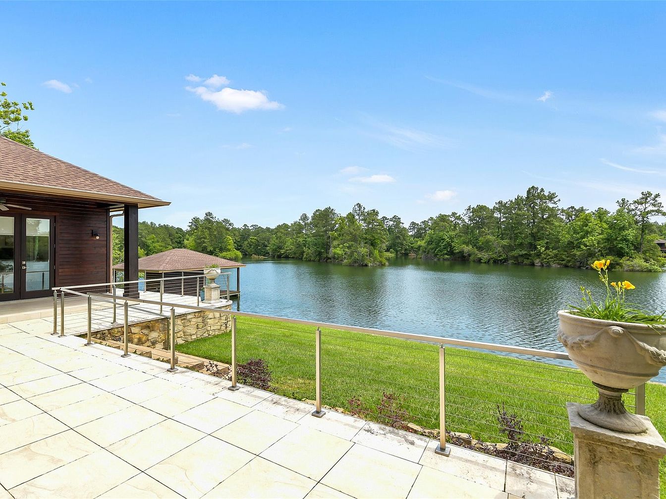 This exquisite custom home at Artesian Lakes near Cleveland, TX, combines modern luxury with tranquil lakefront living. Situated approximately 60 miles from Houston, this residence offers premium architectural design characterized by expansive floor-to-ceiling windows in every room that reveal breathtaking panoramic views of two private lakes. Additional living space is provided by an upstairs bonus room with a half bath and beverage fridge, ideal as a game room or guest suite. Outdoor amenities enhance the lifestyle with covered porches, a fire pit, a boathouse complete with a dock, and a 100-foot bulkhead along the lakefront. While the exact plot area and total square footage are not listed, the extensive grounds and water access highlight the property’s exclusivity and natural beauty. Listed at $1,150,000, this lakefront residence is a rare opportunity to own a blend of elegance, innovation, and nature in one of Texas’s coveted communities.