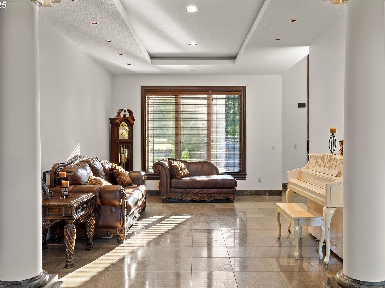 This stunning home in Ridgefield, WA, exemplifies a refined contemporary architectural style with its clean lines, stone and siding exterior, and expansive windows that invite natural light. Set on over 5 flat acres within a premier gated community, the property offers exceptional space, privacy, and flexibility for a luxurious lifestyle. Built with attention to grandeur and comfort, the residence features tall ceilings and an open floor plan that enhances the bright and expansive interior ambiance. Currently listed at $2,399,999, this property offers a rare combination of luxury, spacious acreage, and versatile living in one of the region’s most desirable locations.