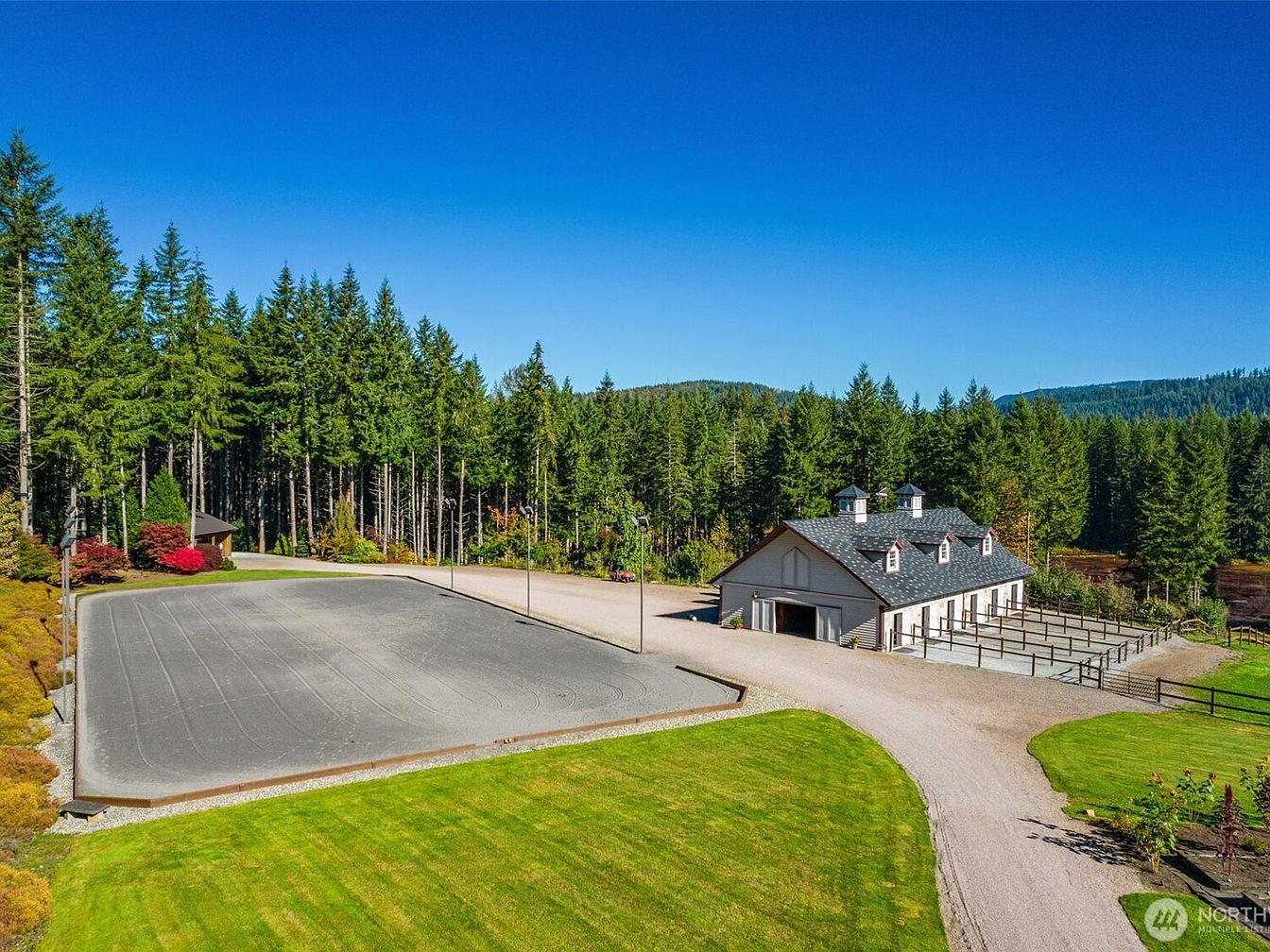 This stunning legacy estate in Carnation, WA, embodies a refined architectural style reminiscent of modern countryside manor homes, blending classic elegance with functional luxury. Situated on an expansive 27-acre plot, this equestrian property is a rare find, thoughtfully designed to be passed down through generations. The estate features a spacious 7,460 square foot main residence, complemented by a private guest suite accessible via a large mudroom, as well as a separate 1,000 square foot guest or caretaker’s home for added convenience and privacy. Noteworthy for its exceptional equestrian facilities, the property includes an 8-stall barn with turnouts and a professionally lit 100’x200′ riding arena, perfectly catering to horse enthusiasts. Surrounded by extensive gardens, orchards, and diverse plants sourced globally, the environment offers a serene, natural beauty. Additionally, a tranquil lake enhances the peacefulness and appeal of the estate. Priced at $6,800,000, this impeccably maintained property is truly a paradise for discerning buyers seeking a luxurious, private lifestyle in harmony with nature and equestrian pursuits.
