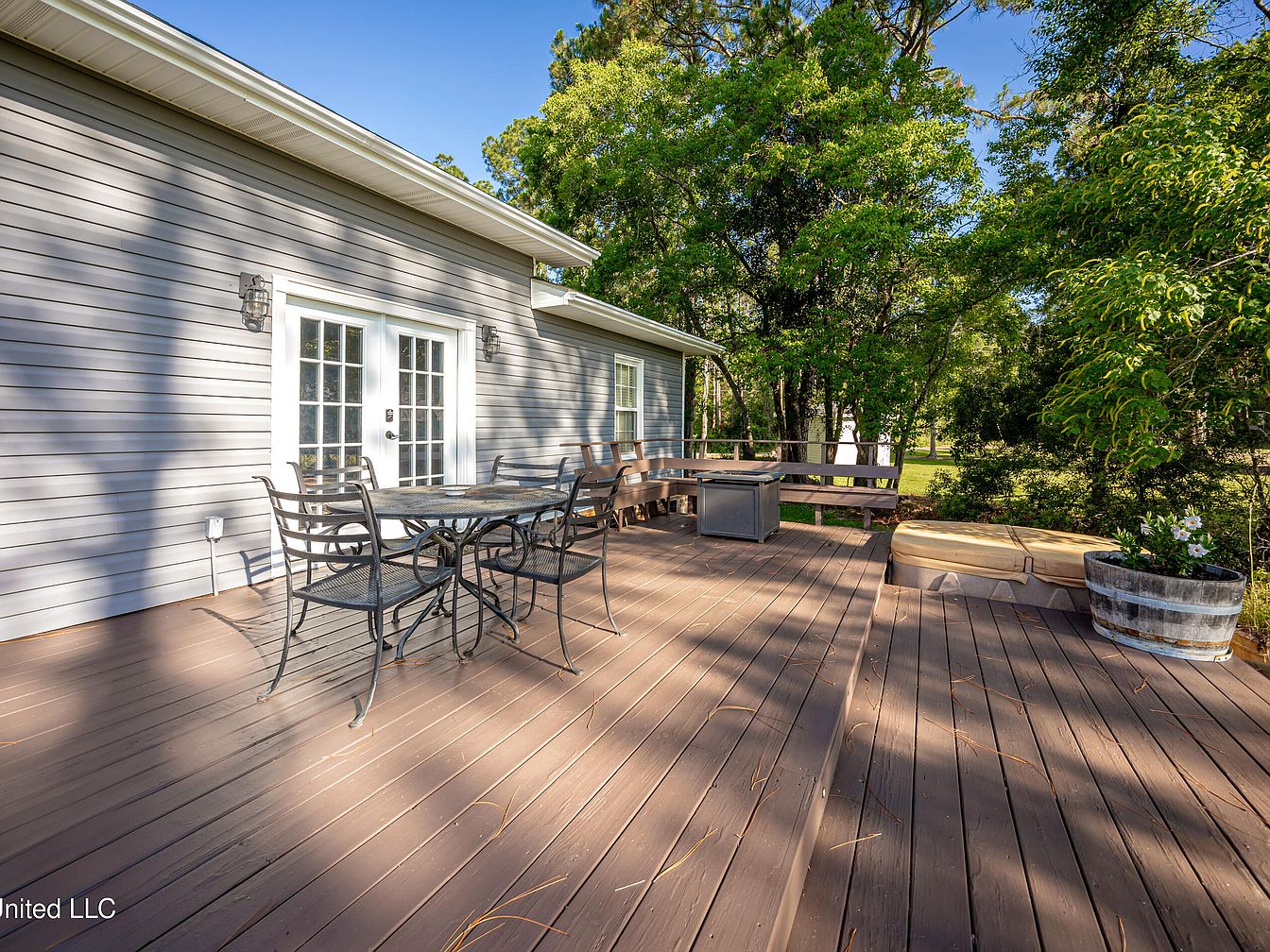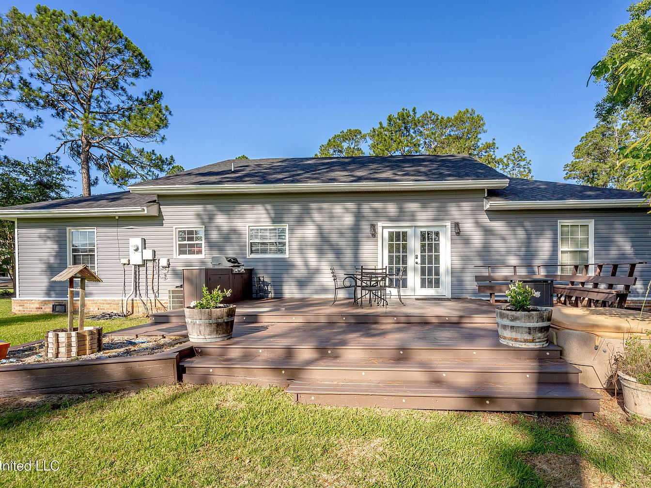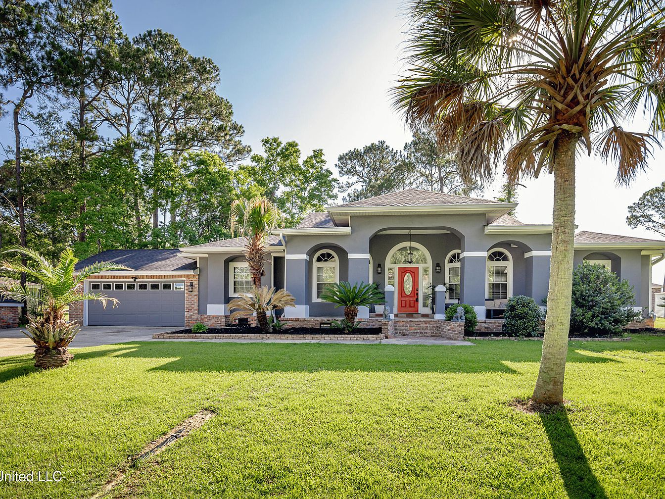 This beautiful Spanish-style stucco home is situated in Biloxi, Mississippi, on nearly an acre of land on a secluded street. Designed with a classic architectural style, it features a split floor plan that offers large bedrooms and tall ceilings accentuated by crown molding, enhancing the spacious and airy atmosphere inside. The home provides both outdoor enjoyment and curb appeal with its expansive back deck and charming covered front porch. The listing price for this inviting home is $324,999, making it a great opportunity for new owners looking for comfort, style, and space in Biloxi.