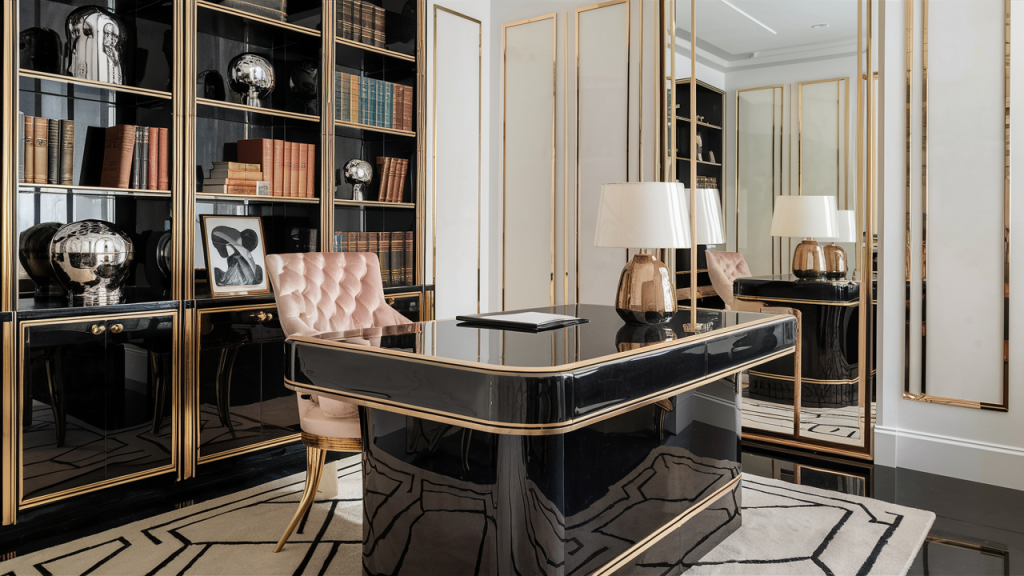 The 1980s embraced excess—bigger, brighter, and bolder was better. Interiors were filled with mirrored surfaces, oversized furniture, and dramatic color combinations like teal, mauve, and black. Memphis-style shapes and lacquered finishes made appearances, while floral drapes and swag valances added layered opulence. Design in this era didn’t whisper—it strutted in with neon flair, loud patterns, and unapologetic personality.