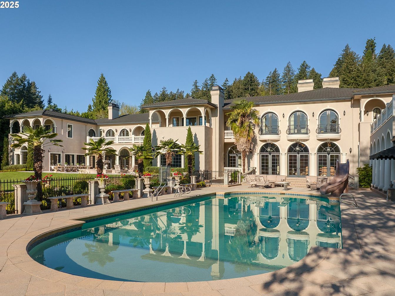 This magnificent estate, located in the prestigious city of Lake Oswego, Oregon, is a stunning example of luxury riverfront living. The architectural style combines classical grandeur with modern elegance, evident in its symmetrical facade, arched windows, and refined detailing. Built to impress, the home features custom finishes and exceptional craftsmanship throughout. Outdoor living is equally impressive with a palatial patio designed for resort-style relaxation and entertainment. Priced at $9,950,000, this rare opportunity to own one of Oregon’s most breathtaking riverfront estates combines elegance, comfort, and unparalleled amenities on a large plot to enjoy prestigious lake and riverfront living in Lake Oswego.