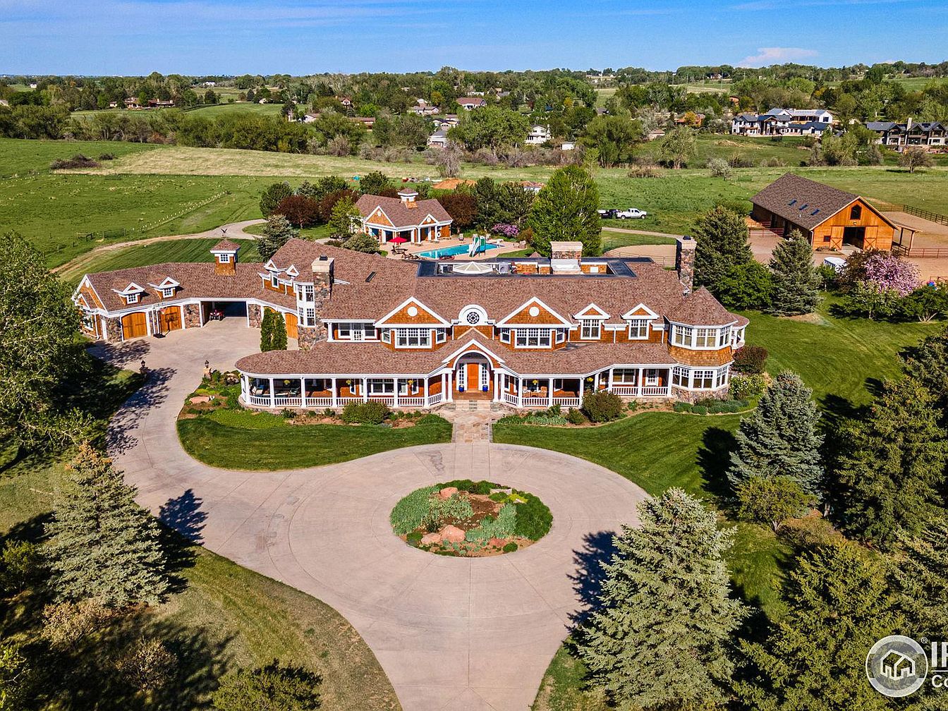This extraordinary estate is a stunning example of Nantucket-inspired architecture, characterized by its cedar siding, wraparound verandas, and a stately porte-cochere that exudes timeless elegance. Located in Boulder, Colorado, this luxury property is set on an expansive 39-acre plot offering unparalleled privacy amidst natural beauty. The estate was thoughtfully designed to blend refined comfort with the serene Colorado landscape, featuring a custom seven-bedroom residence equipped with an elevator for convenience and superior craftsmanship throughout. Offered at $11,700,000, this estate is not just a residence but a private sanctuary ideal for outdoor lovers, artists, musicians, and car collectors.