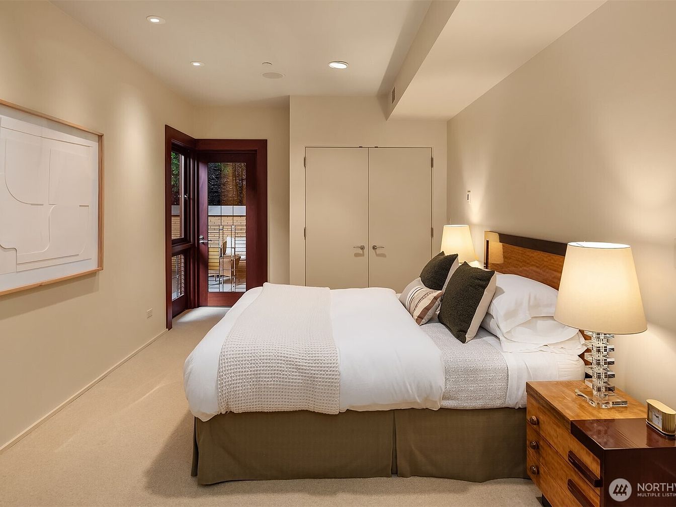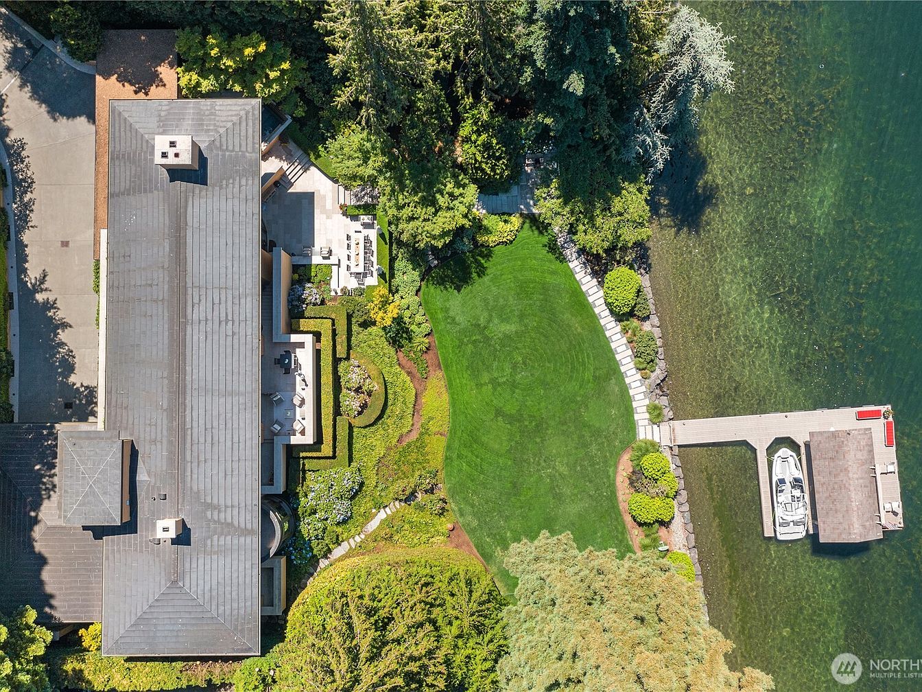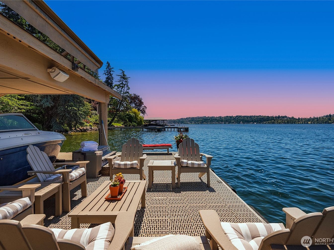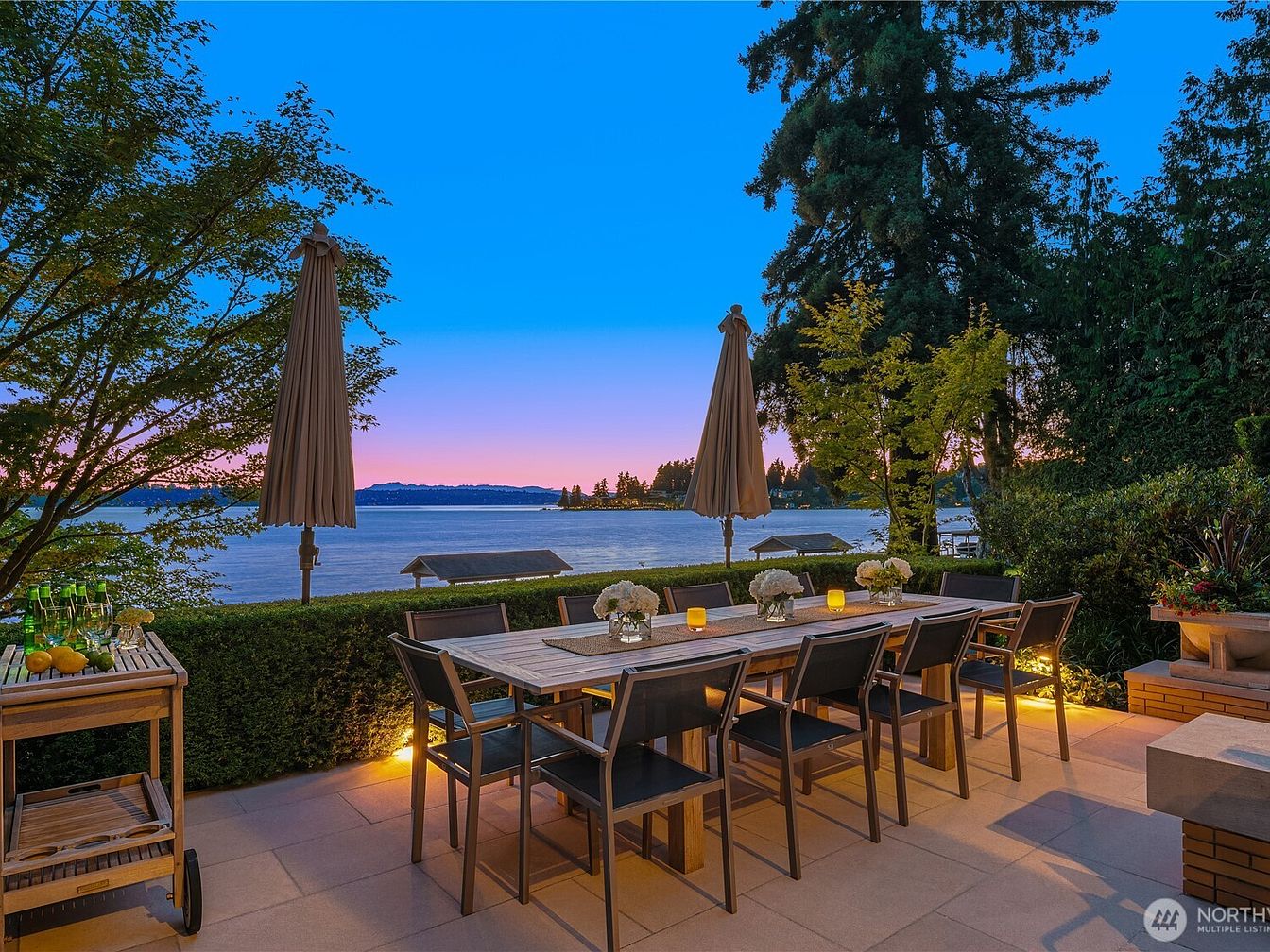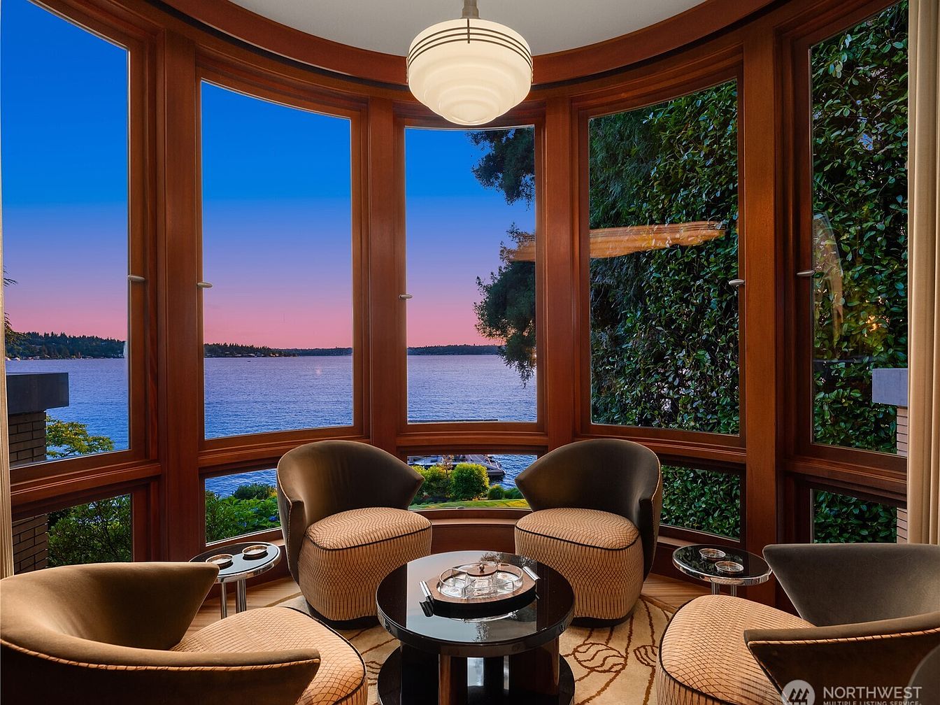 This exquisite home is a Tom Kundig-designed architectural masterpiece, reflecting the spirit of Frank Lloyd Wright through its seamless blend of traditional and modern elements. The exterior showcases a sophisticated combination of brick, mahogany, limestone, and copper, creating a warm and timeless façade. Inside, the residence features Art Deco elegance with stunning book-matched Honduran mahogany walls and luxurious African mahogany floors throughout, emphasizing the home’s refined craftsmanship and attention to detail. Situated in Bellevue, Washington, this property boasts nearly 2 acres of land with 135 feet of prime waterfront frontage, providing spectacular west-facing sunset views. Listed at $24,985,000, this exceptional estate offers an unparalleled living experience in a coveted location.