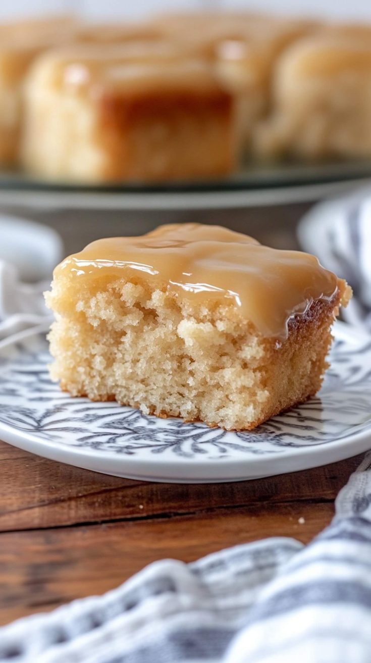 Allow the cake to sit for about 30 minutes to let the glaze set up and fully absorb into the cake. Afterward, you can slice and serve.